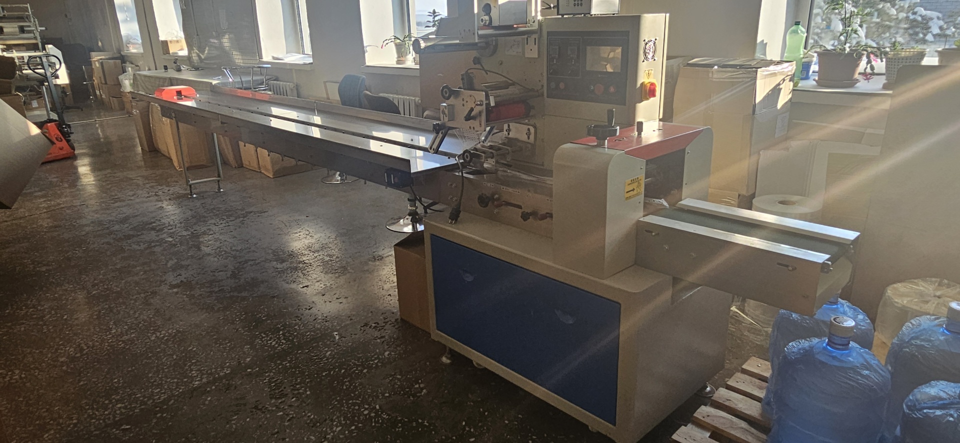 Флоу-пак конвейр в отличном состоянии. Все работает. Использовался мало. 2020 года, 4 метра, счетчик. Продается в связи с покупкой другого оборудования.
