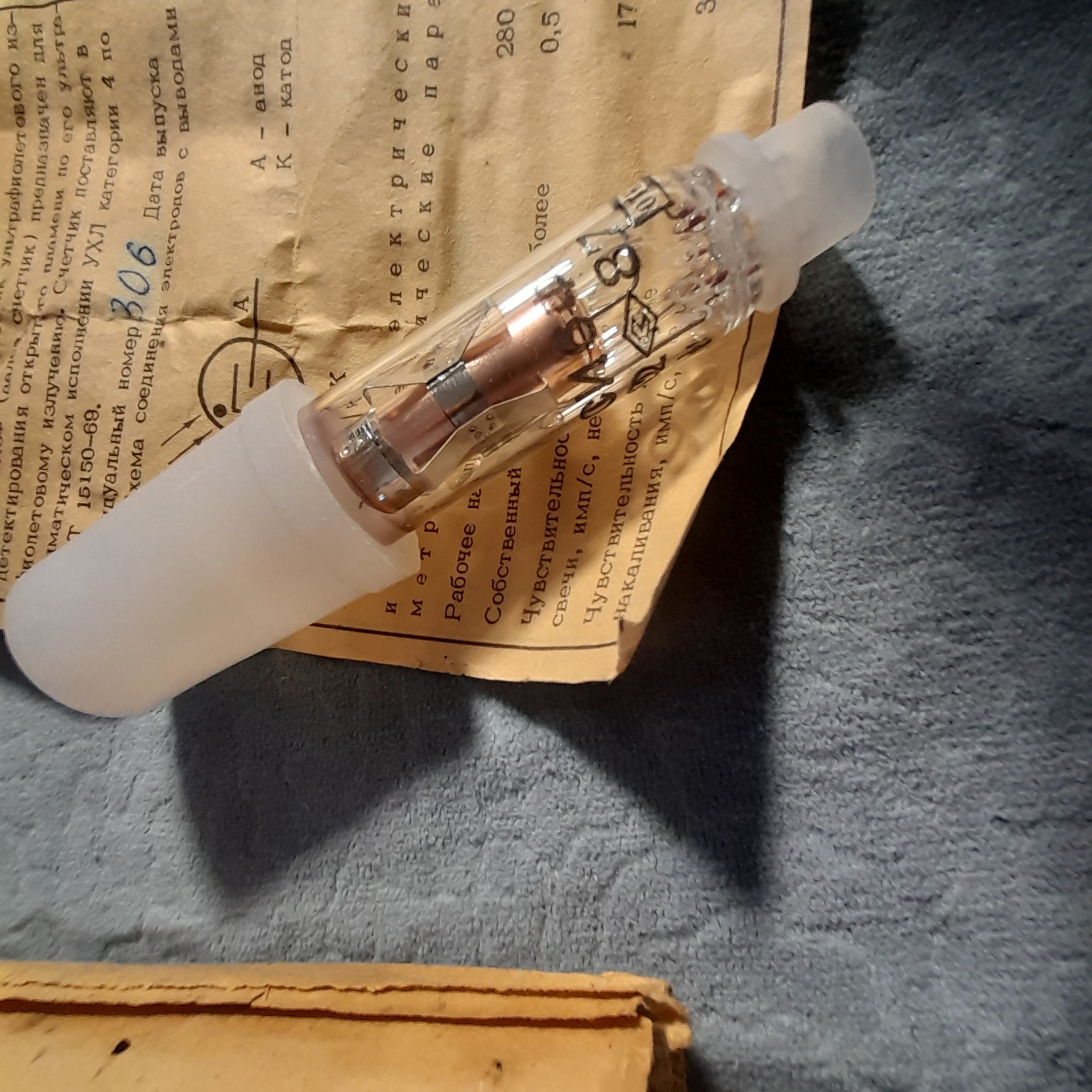 рабочее напряжение: 280 В;собственный фон: не более 0,5 имп/с;чувствительность к пламени свечи: не менее 17 имп/c (на расстоянии 1 м);