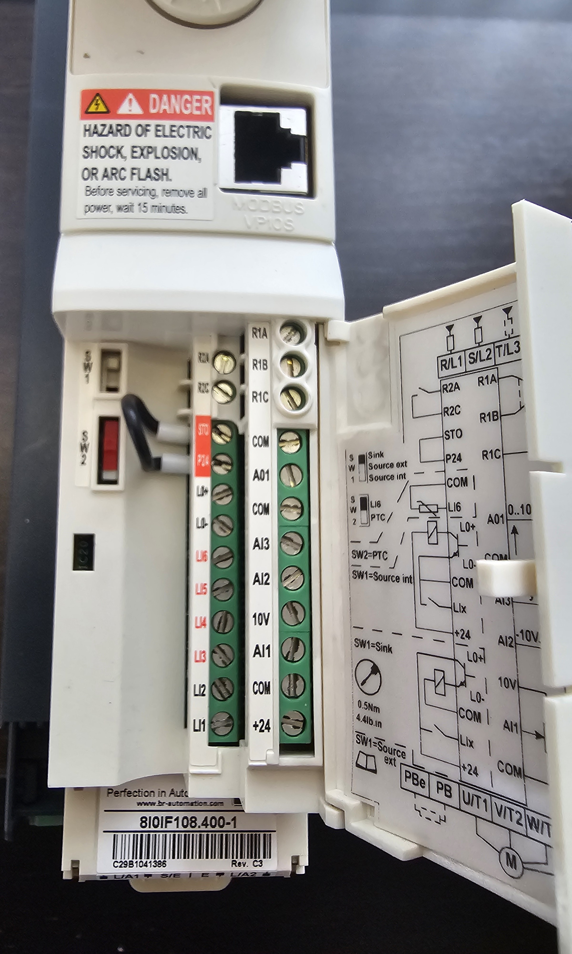 В наличии полный комплект: промышленный компьютер B&R Panel PC 2100 5AP923.1215-00, 5 частотных преобразователей B&R 8I74T400400.010-1, 4 блока B&R 8I0IF108.400-1для связи частотного преобразователя и компьютера, контроллер шины B&R X20BC0083, 6 соединительных кабелей B&R X20CA0E61.00300.