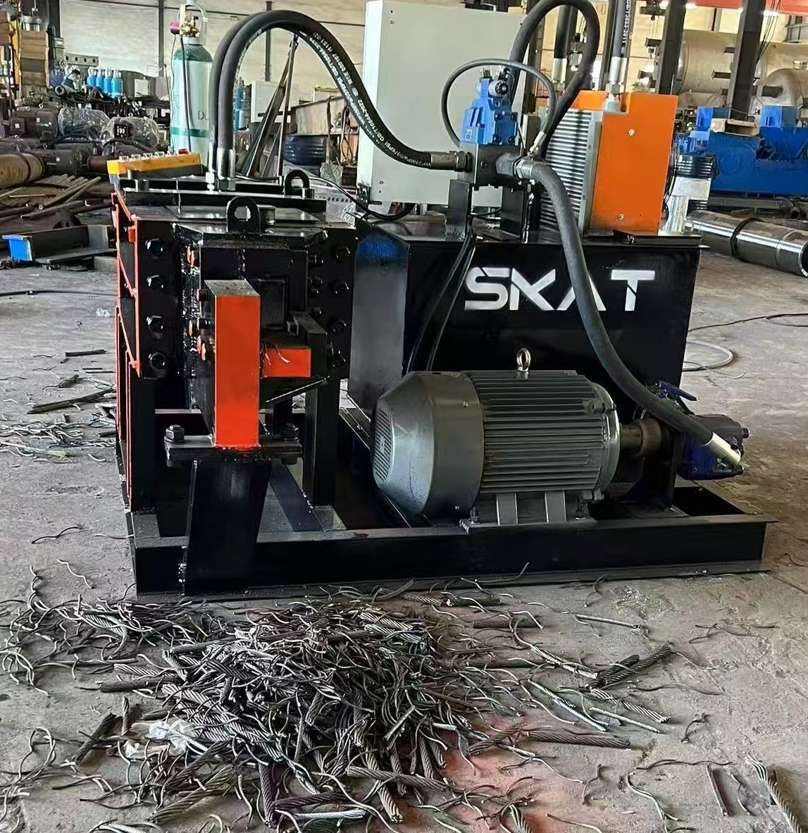 Машина для резки стальных канатов предназначена для холодной резки различных форм стали и различных металлических конструкций компаниями по переработке металла, заводами по переработке лома, плавильными и литейными предприятиями.