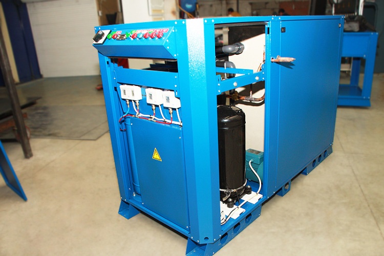 Установка выполнена в виде холодильного блока, металлический каркас, окрашенный порошковой краской с легкосъемными панелями.