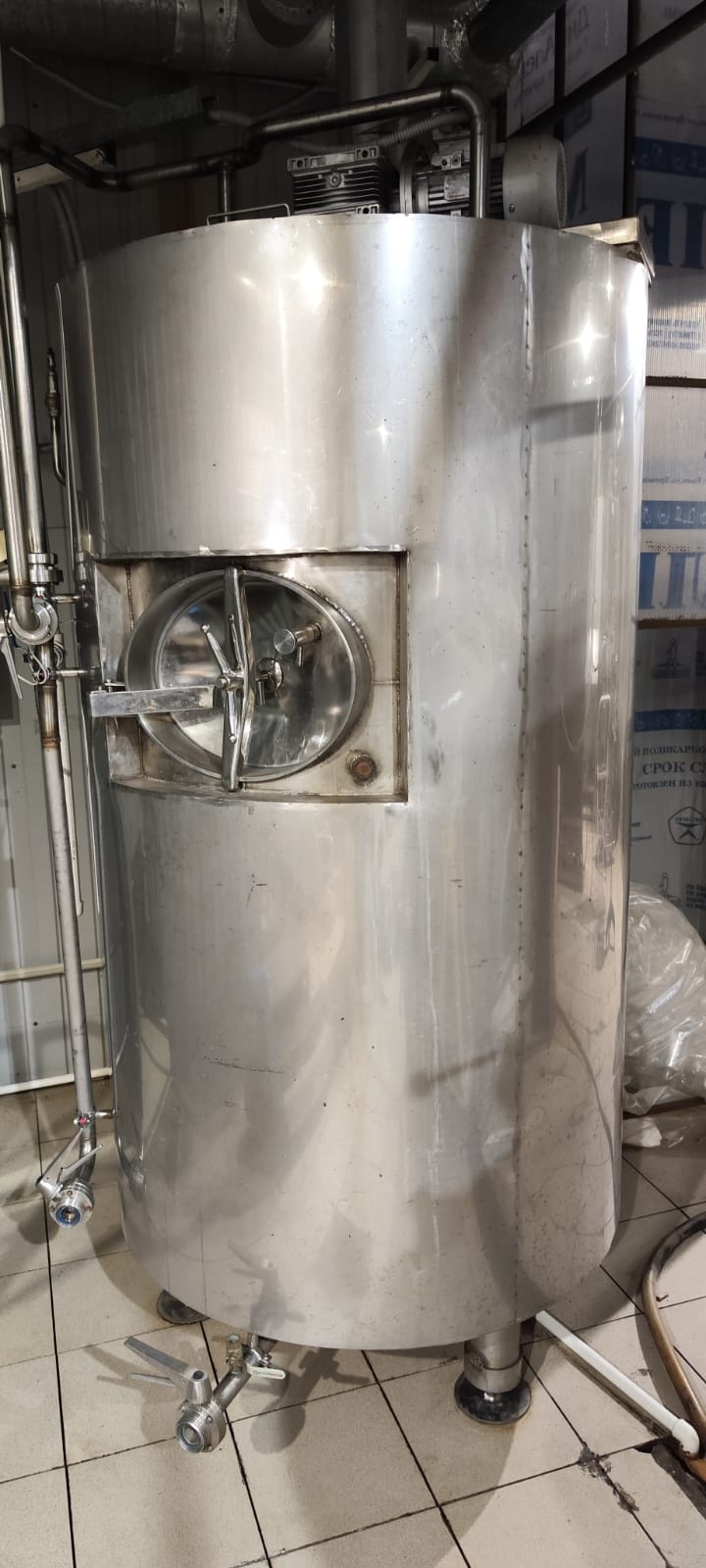 Продам Заторно-сусловарочный аппарат (варочный котёл) на паровой рубашке, предназначенный для процессов затирания и варки сусла. Аппарат оснащён механической мешалкой с мотор-редуктором, управление которой осуществляется через частотный преобразователь — можно плавно регулировать обороты под разные режимы работы.