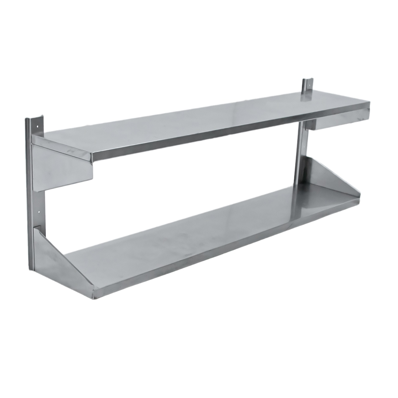 Полка навесная двухъярусная предназначена для организации рабочего пространства на кухонной зоне, складском комплексе, предприятии питания, торговли. Имеет два уровня выкладки. Можно использовать для выкладки аксессуаров, специй, посуды, инвентаря и проч. Изготовлена из высококачественной нержавеющей стали, предназначена для эксплуатации в условиях повышенной влажности, не впитывает запахи и легко моется.