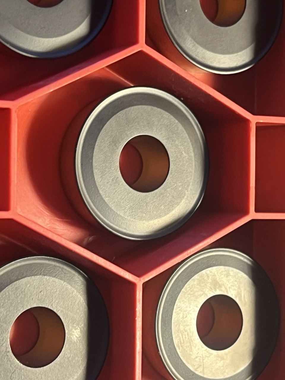 Геометрия (RCMX 3009): Круглая пластина диаметром 30 мм и толщиной 9,525 мм. Круглая форма — самая прочная, она выдерживает огромные нагрузки и удары при работе по «лыскам» и наварам на колесах.
