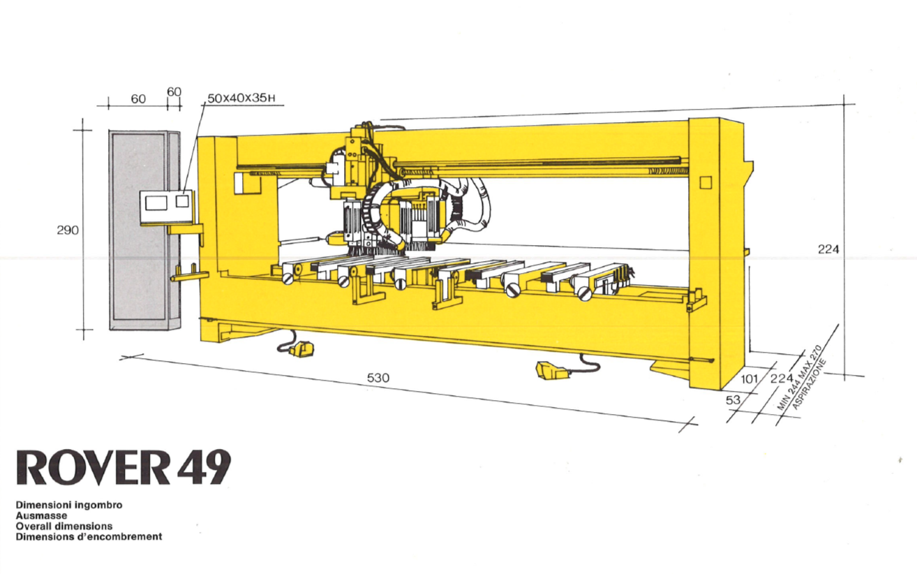 Станок работает по координатам X, Y и Z, может фрезеровать криволинейные профили, пазы, выборки и фигурные элементы с высокой точностью. Оснащён 36 вертикальными шпинделями и 12 горизонтальными, что позволяет одновременно выполнять присадку множества отверстий на панели с четырёх сторон — идеальное решение для серийного производства. Два фрезера со стандартными цангами и два с конусом Морзе CM2 обеспечивают возможность работы с фрезами разного диаметра и формы, включая дисковые фрезы до Ø120 мм. Шпиндели фрезеров работают до 18 000 об/мин с мощностью до 5,59 кВт, а дисковые фрезы обеспечивают быстрый и точный рез любой древесины или композитных материалов. Станок рассчитан на непрерывное производство, один раз настроив на деталь, можно работать круглосуточно без остановки. При желании можно за небольшие деньги обновить главный компьютер, и станок будет работать на современном уровне. Для сравнения: аналогичная модель Biesse Rover 2025 года сегодня продаётся от 20 млн рублей. ROVER 49 даёт практически те же возможности за разумные деньги.