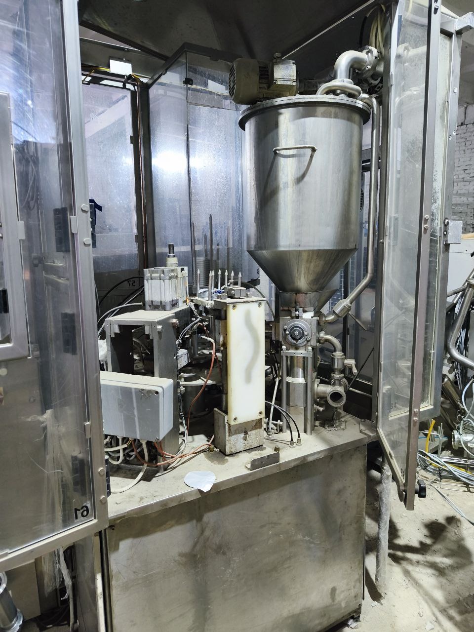 Назначение: Автоматическая фасовка жидких и вязких продуктов (йогурт, сметана, соусы) в пластиковые стаканы с последующей запайкой.
