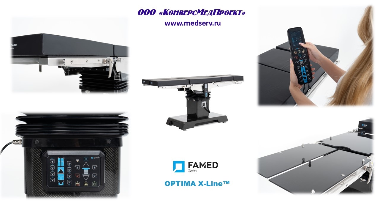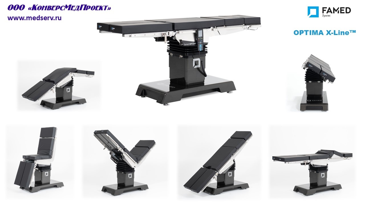 ООО "КонверсМедПроект" на правах официального дистрибьютора настоящим представляет Optima X-Line (https://www.medserv.ru/catalog/Operatsionnye-Stoly/1885.html )- семейство разноплановых функциональных операционных столов для широкого спектра хирургических процедур.