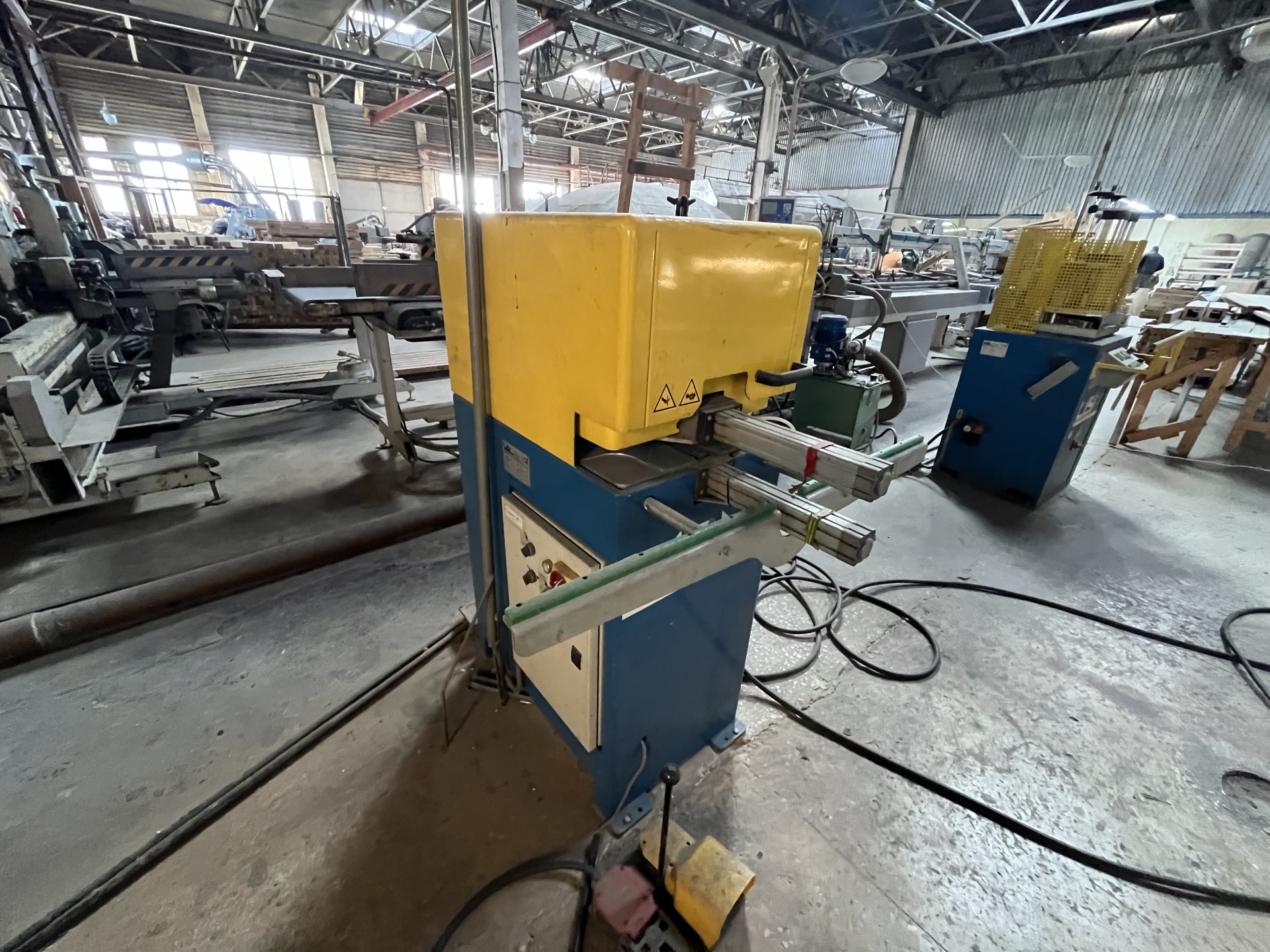 4. MECAL FR 701 - фрезерный станок с ручной подачей фрезы. Станок предназначен для обработки торца импоста для производства оконных и дверных конструкций из ПВХ и алюминиевых профилей. Станок оснащен пневмоприжимами для фиксации заготовки на рабочей поверхности стола.