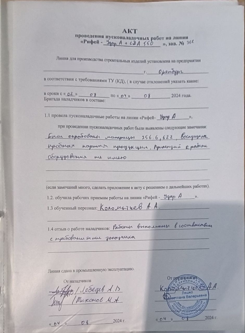 Произведен запуск бригадой наладчиков завода-изготовителя, обучен персонал. Это гарантирует, что оборудование отлажено и готово к работе.