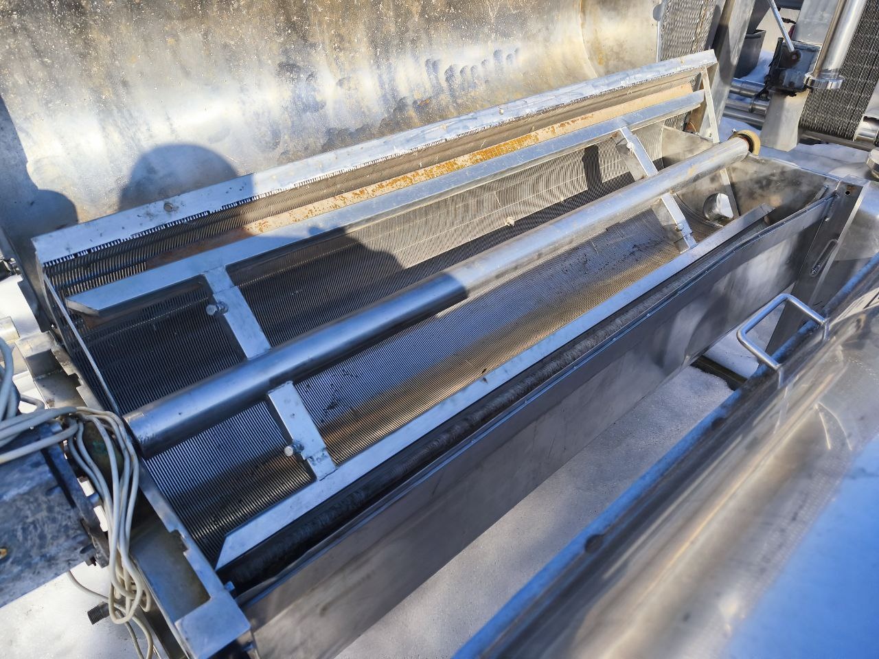 цилиндрическое сито со скребками. Идеально подходит для пищевой промышленности для отделения твёрдой фракции при производстве пищевых продуктов от жидкой