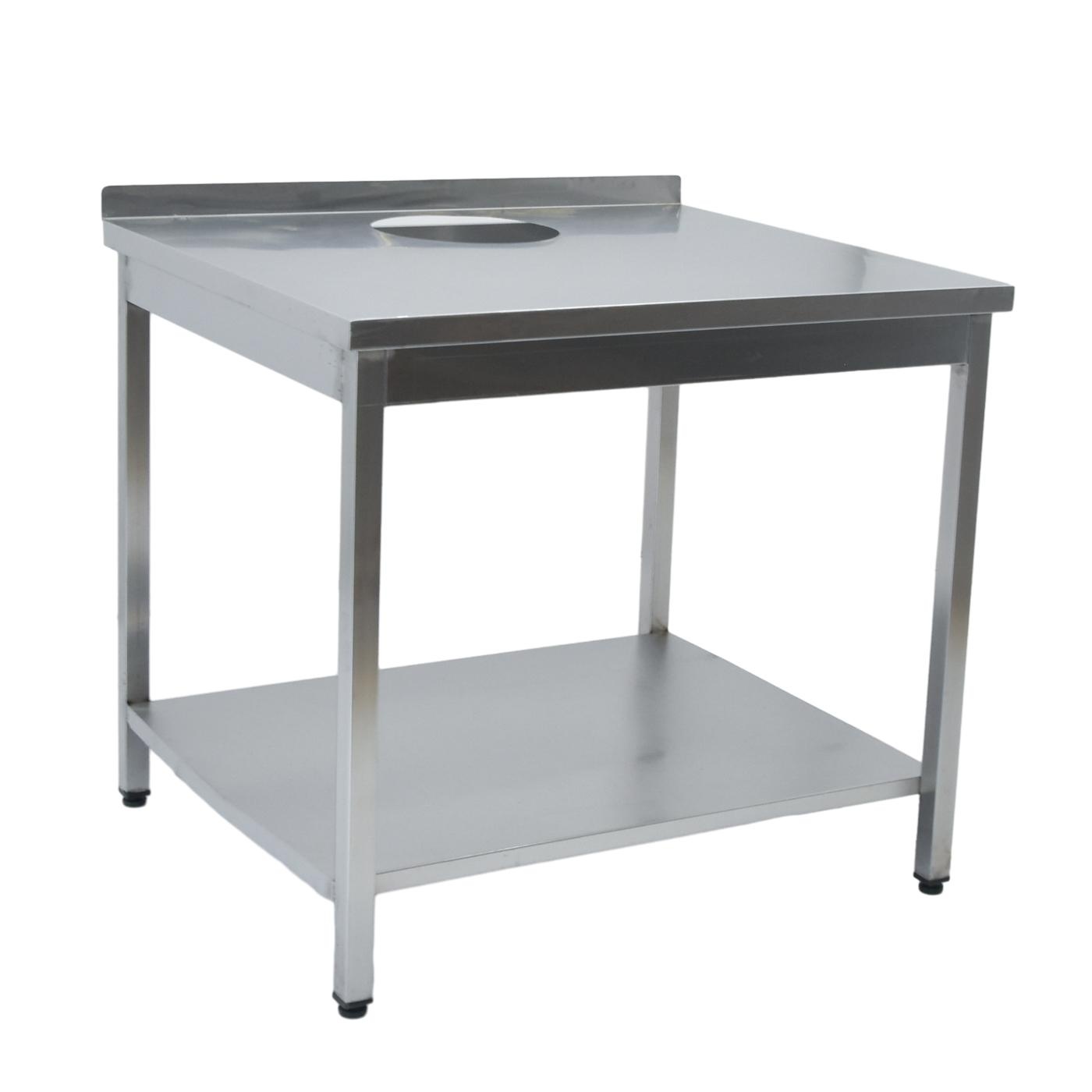 Стол производственный с отверстием для сбора отходов предназначен для подготовки ингредиентов и приготовления блюд в заведениях общественного питания и торговли. Отверстие позволяет расположить мусорное ведро прямо под столом и избавляться от отходов, не прерывая рабочего процесса. Нержавеющая сталь высокого качества способна выдерживать большие нагрузки, устойчива к повышенной влажности, перепадам температуры и не впитывает запахи. Изделие не требует трудоемкого ухода и является экологичными.