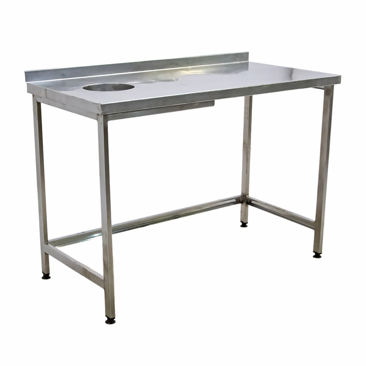 Стол с отверстием для сбора отходов применяется на предприятиях общественного питания с целью обработки пищевых продуктов в процессе приготовления блюд. Столы производственные очень востребованы на кухне столовых, ресторанах, кафе, кондитерских цехах, супермаркетах, комбинатах питания и так далее. Столы производственные изготавливаются из высококачественной нержавеющей стали. Регулируемые ножки позволяют выравнивать стол при установке на не ровный пол.