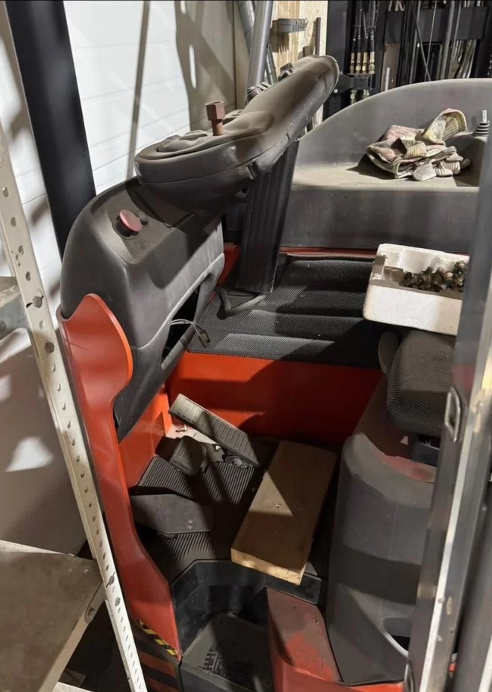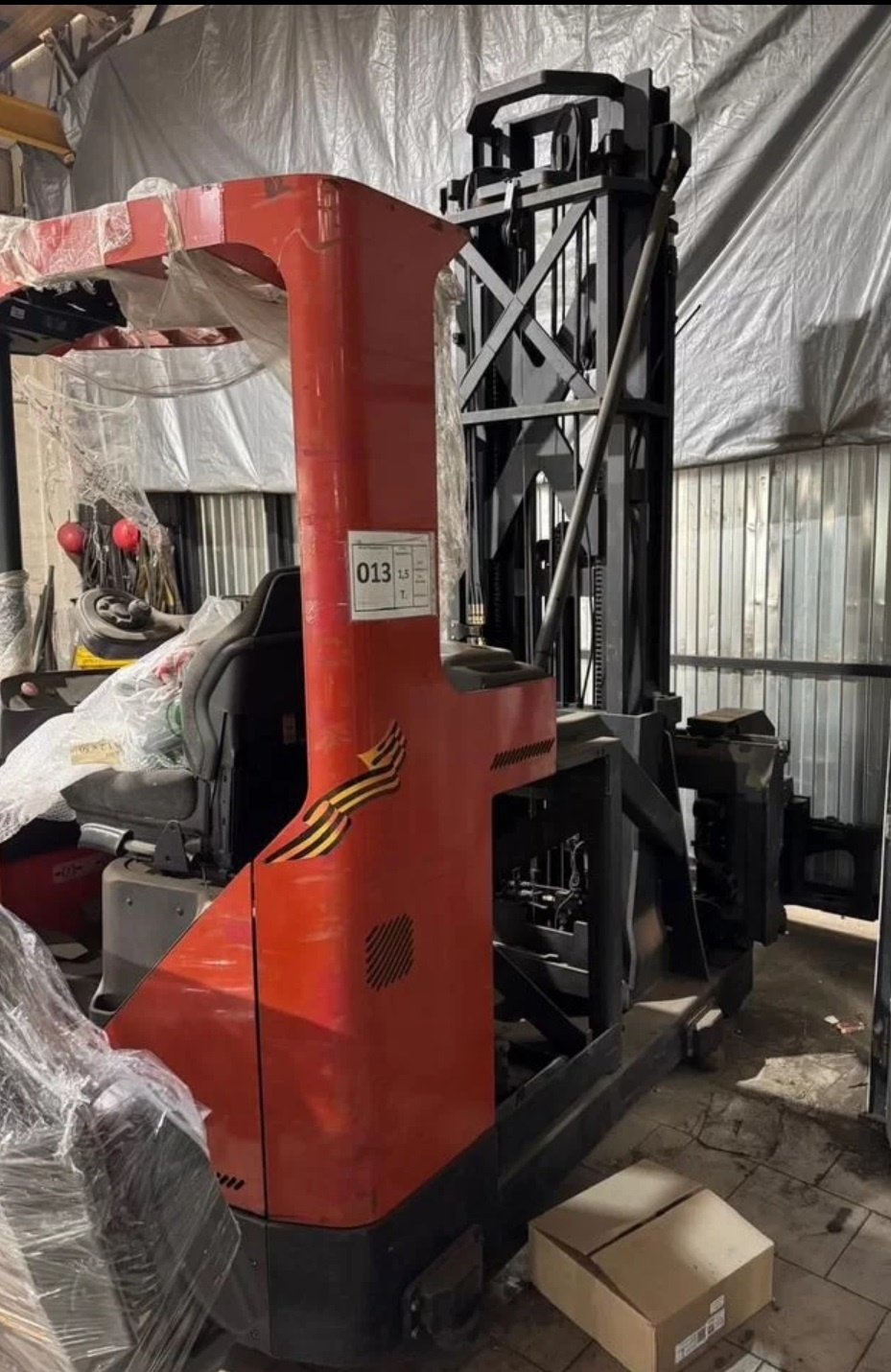 Продается узкопроходный штабелер марки ВT, модель VR. Грузоподъемность 1500кг, высота подъема 6100мм, вилы 1200 мм, общий вес 4т. Батарея отсутствует. Второй такой же запущен в работу (для него батарею купили и установили) все остальное проверяли.