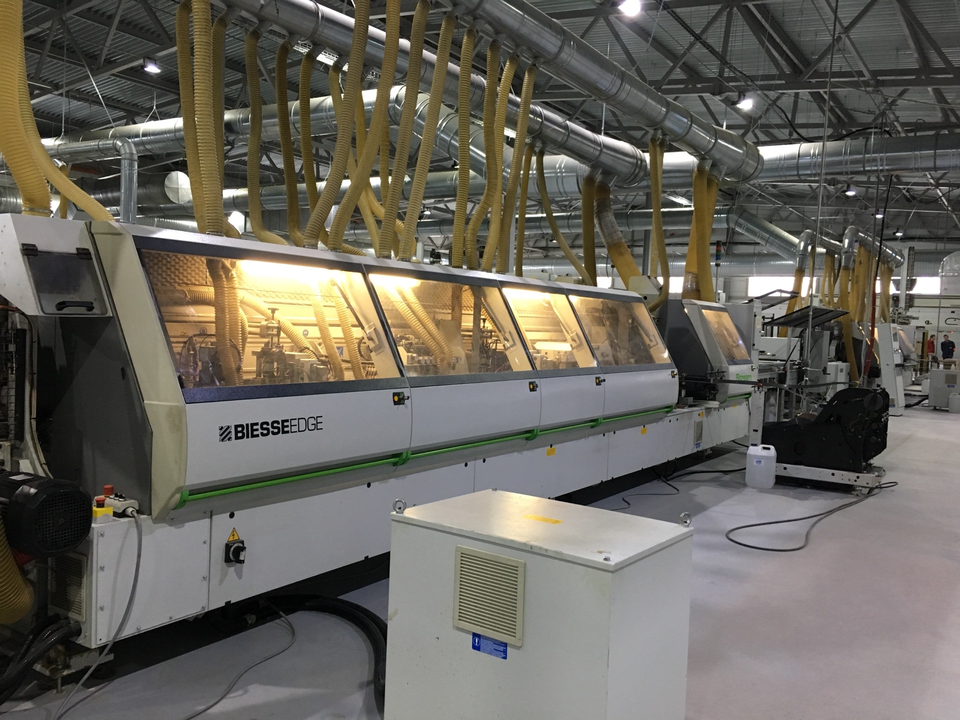 - Stream (4 шт.): Четыре высокоточных кромкооблицовочных станка. Оснащены магазином на 6 кромок с функцией автоматической смены и подклейки нового рулона (без остановки производства).
