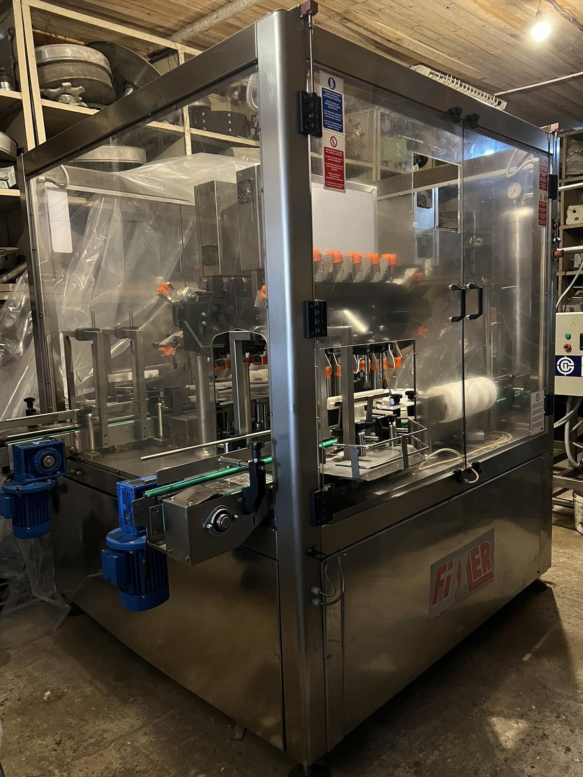 2. Бракеражный инспекционный автомат Fimer и Бракеражная машина Мегамаш ММ7. Автомат для визуальной инспекции пищевых жидкостей (бракераж) Fimer, модель BR-14 TWIN, Италия, производительность 12000 б/ч (сдвоенный), орбитального типа, в нержавеющем исполнении, 14х2=28 захватов. А также бракеражная машина для визуальной инспекции пищевых жидкостей Мегамаш марки ММ7, Россия, производительность 6000 б/ч, орбитального типа, в нержавеющем исполнении, 14 захватов.