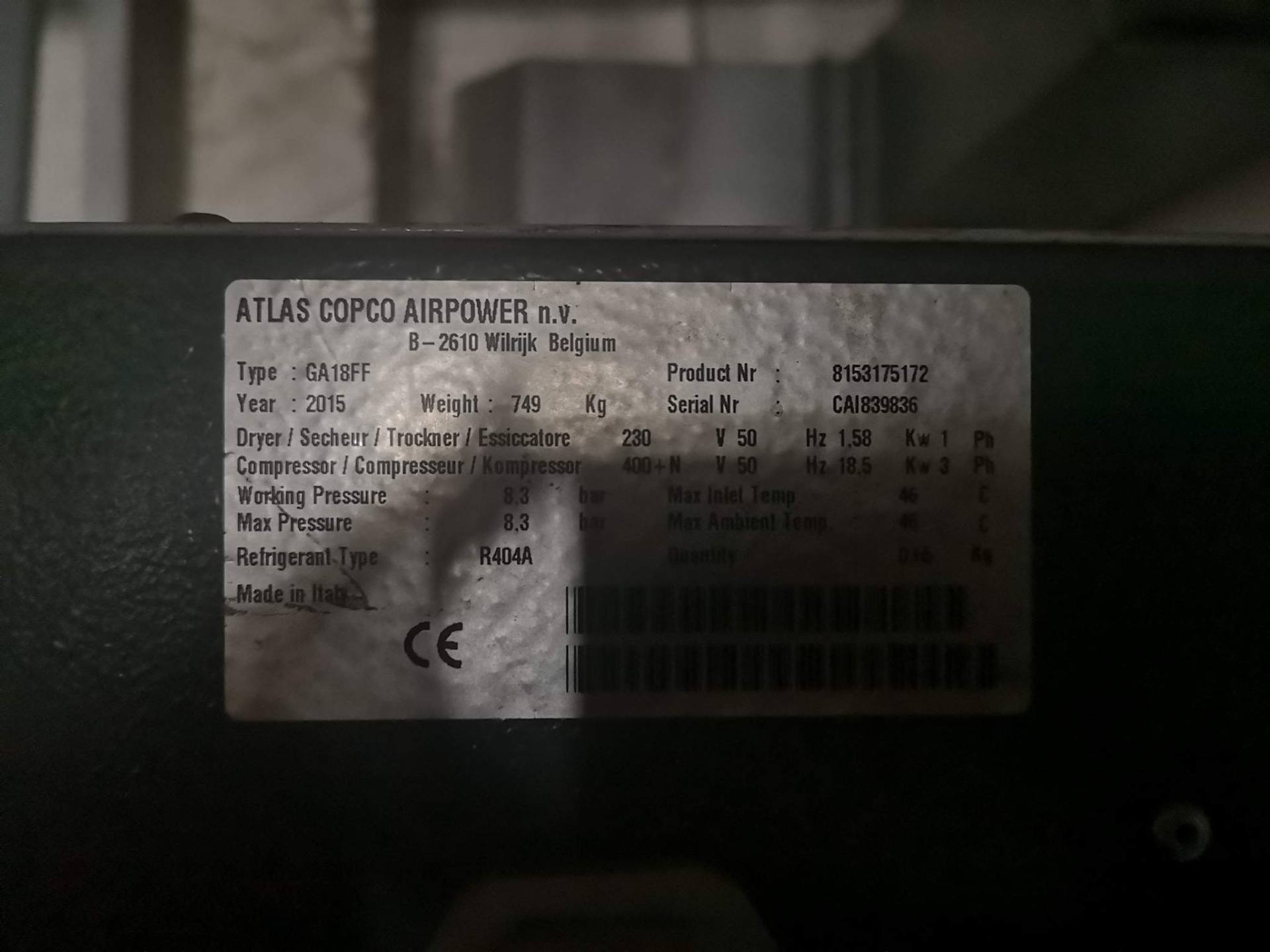 Компрессор винтовой Atlas Copco GA 18 FF. В эксплуатации 4 месяца.