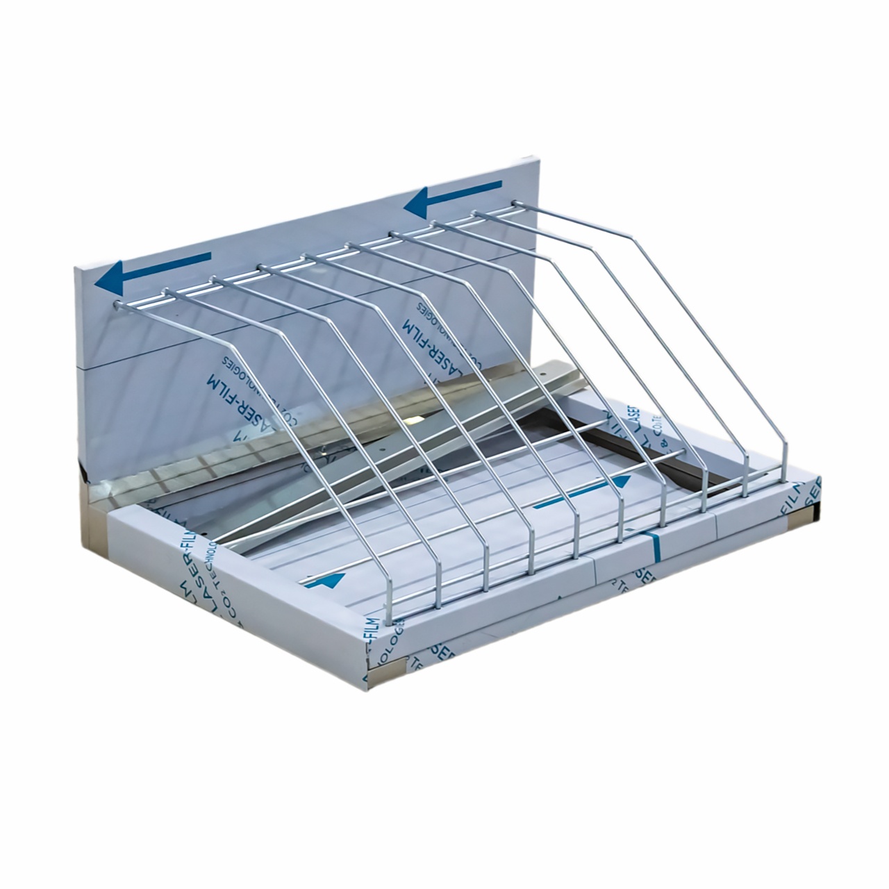 Полка навесная для досок 600х430х290 предназначена для хранения и сушки разделочных досок разной толщины на предприятиях общественного питания в моёчных отделениях и складских помещениях