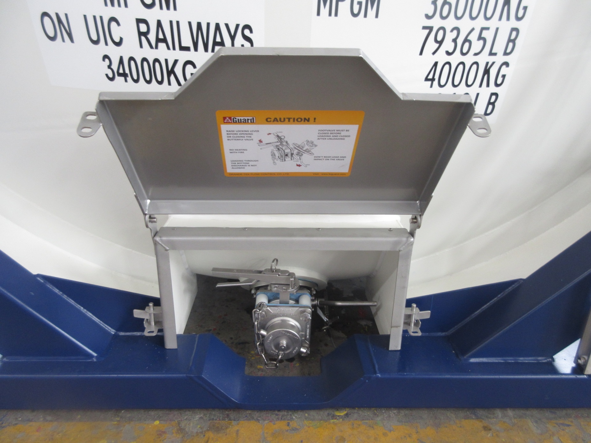 | Нижнее устройство слива (налива) груза | Последовательно установленные внутренний 3” 45° донный клапан и 3” зажимной поворотный кран (наружный клапан) и выходной патрубок с резьбой 3"BSP и резьбовой крышкой. |
