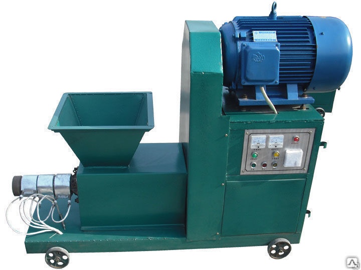 Работа экструдера: при одновременном воздействии высокого давления, посредством шнека и высокой температуры (порядка 200оС), древесные отходы частично размягчаются, с выделением лигнина, прессуются и выдавливаются в виде брикета цилиндрической формы
