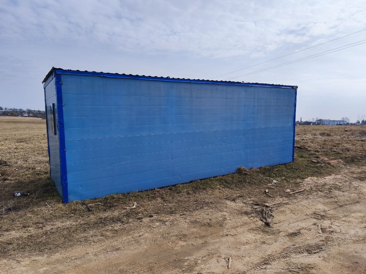 Утепленный контейнер с металлической дверью и окном с решеткой.