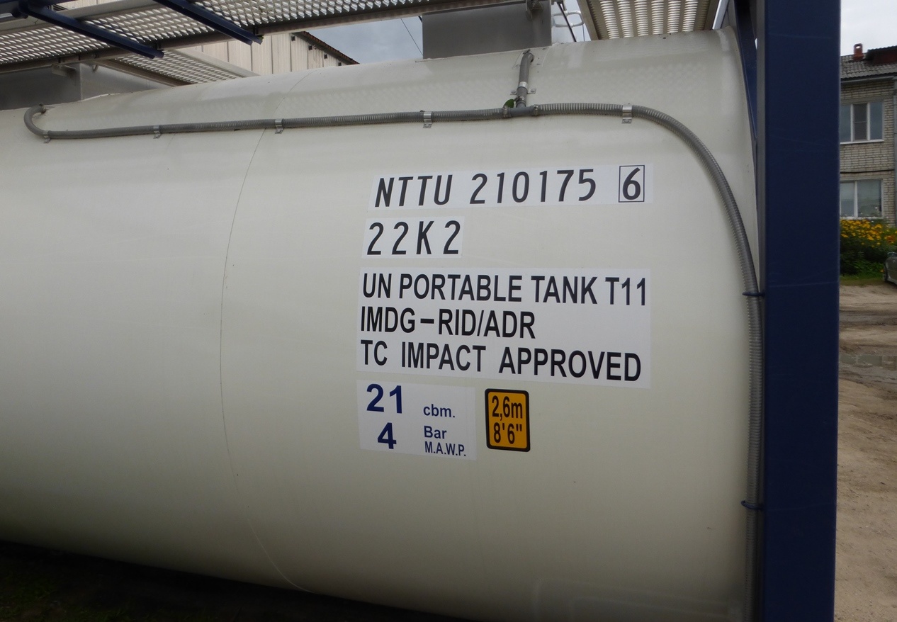 Тип стандартный 20-фут танк-контейнер с изоляцией и пароподогревом с двумя противоударными перегородками (волногасителями)