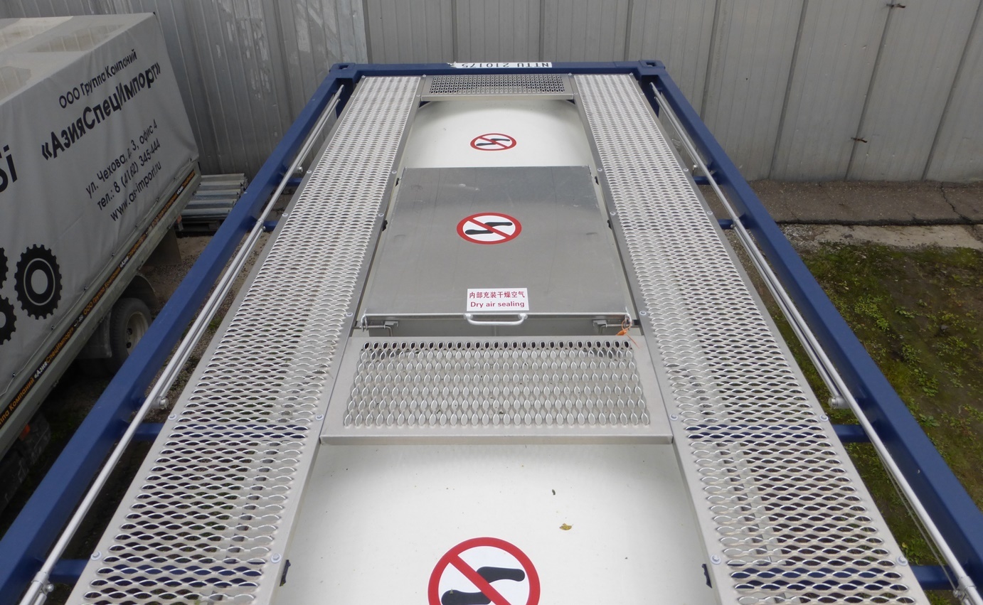 Площадки обслуживания «В»-образной формы 2 продольных трапа по бокам и 3 поперечных трапа.
