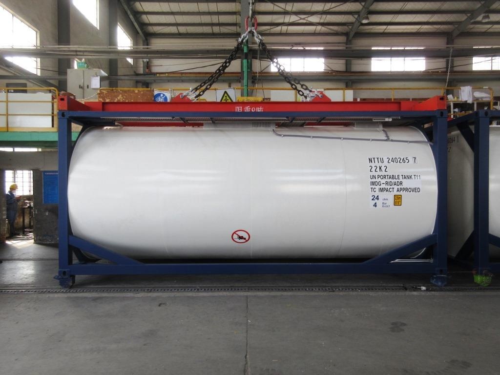 Тип стандартный 20-фут танк-контейнер, полнокаркасная рама, тип UN Portable Tank T11, с изоляцией и пароподогревом.