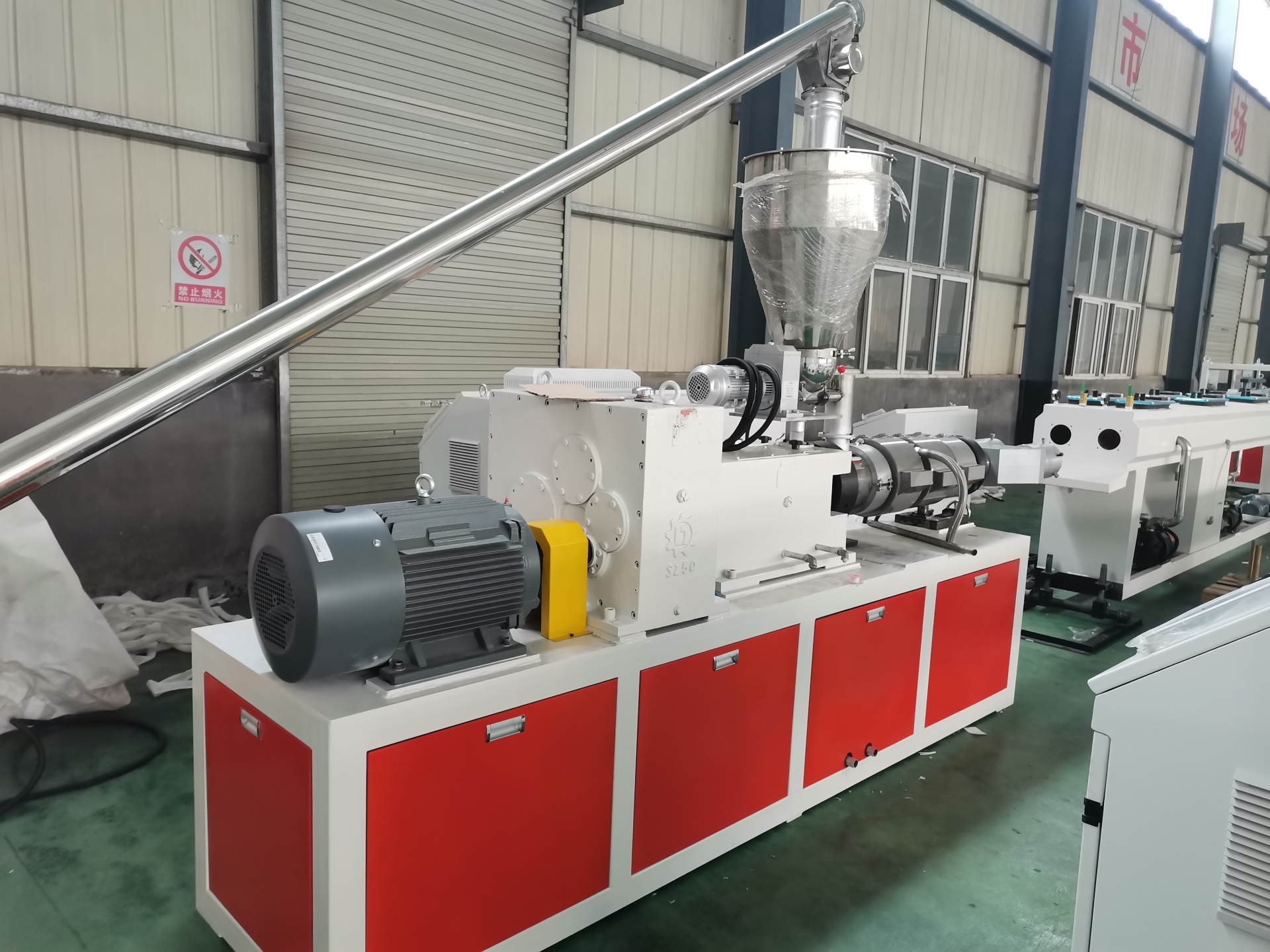 Конический двухшнековый экструдер: сердцевина. ПВХ обладает высокой термочувствительностью, конический двухшнековый сдвиг мягкий, эффект пластификации хороший. Это специальная машина для производства труб из ПВХ.