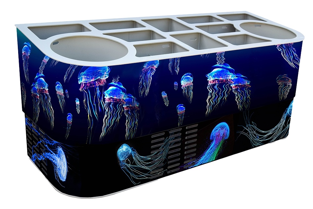Наши специалисты готовы изготовить Вам торговое оборудование необходимых размеров, исходя из планируемого объема для хранения живых морепродуктов и рыбы.