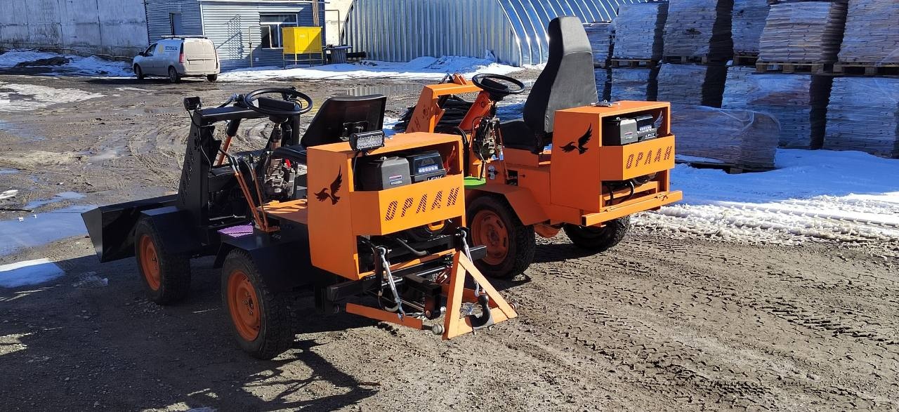 ????Минитрактор «Орлан» в комплектации погрузчик, идеально подходит для погрузочно-разгрузочных работ, уборки и чистки снега.