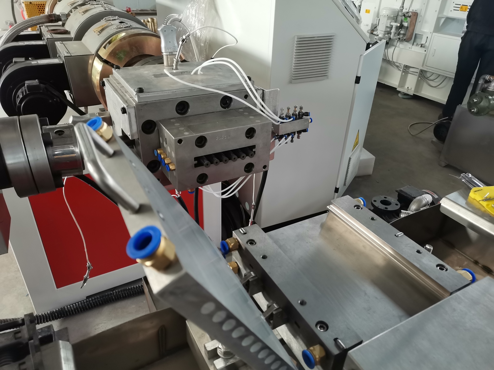 Вакуумный формовочный стол: вакуумное отрицательное давление (-0,07~-0,09МПа) + циркуляционное водяное охлаждение для быстрого формирования профиля и предотвращения деформации; длина 2,5–6 м, многозонный независимый контроль температуры и регулировка вакуума.