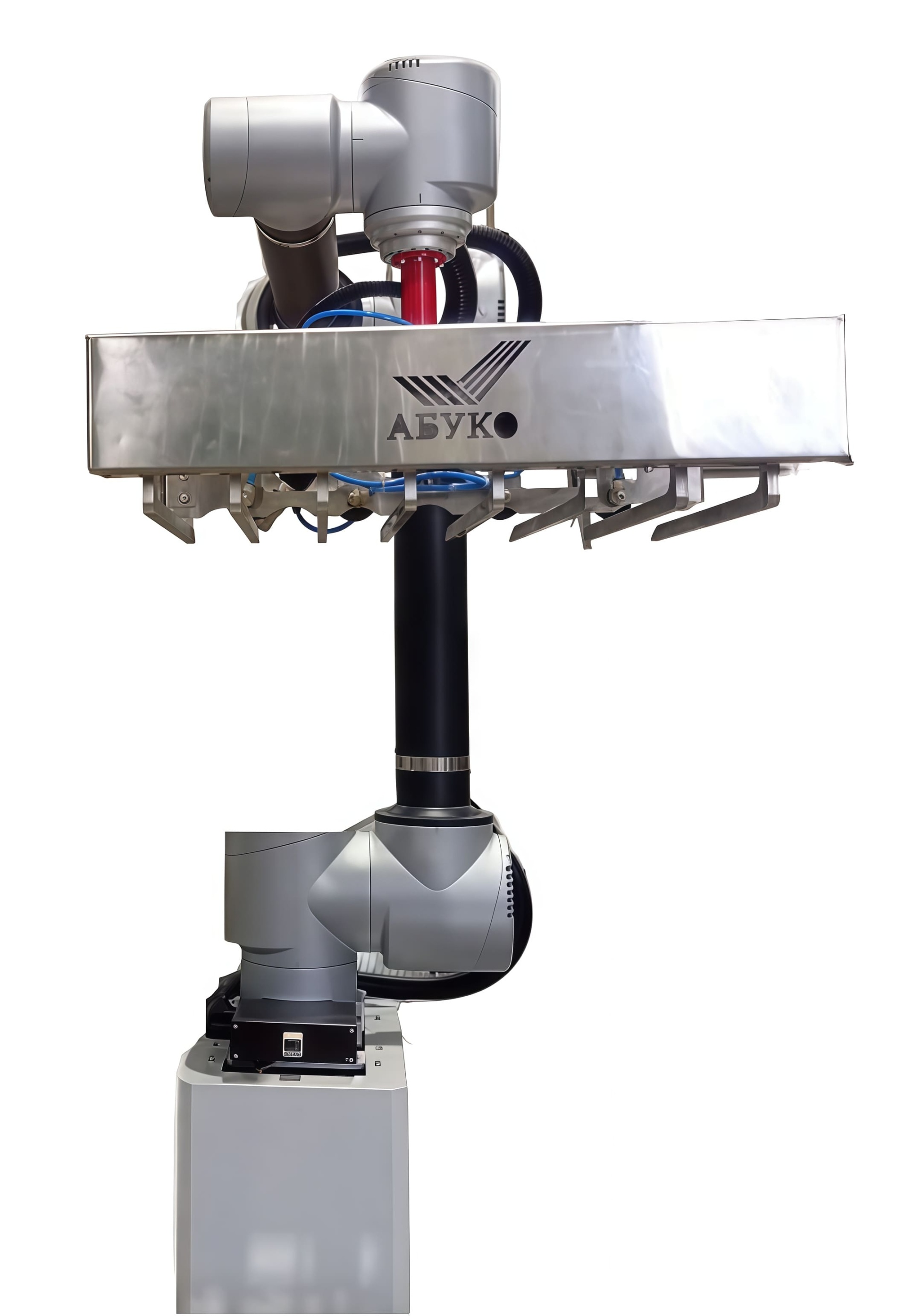 Данный вилочный захват разработан специально для интеграции с коллаборативными роботами-паллетайзерами, что обеспечивает безопасное взаимодействие с персоналом без необходимости установки защитных ограждений.