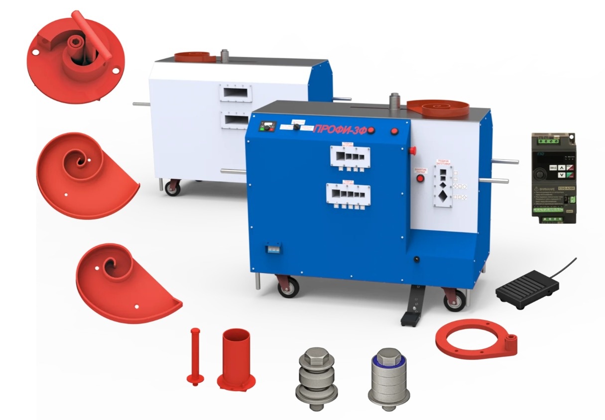 Станок «ПРОФИ-3Ф» используется для изготовления из профильной трубы и полнотелого металлопроката декоративных элементов методом «холодной» или «горячей» ковки, а также нанесения ромбовидного узора на поверхность заготовки различного сечения. Вам остаётся лишь, используя сварку, скомбинировать набор элементов в сложный фигурный орнамент, который украсит интерьер, придомовую территорию, парковую зону и т.д.