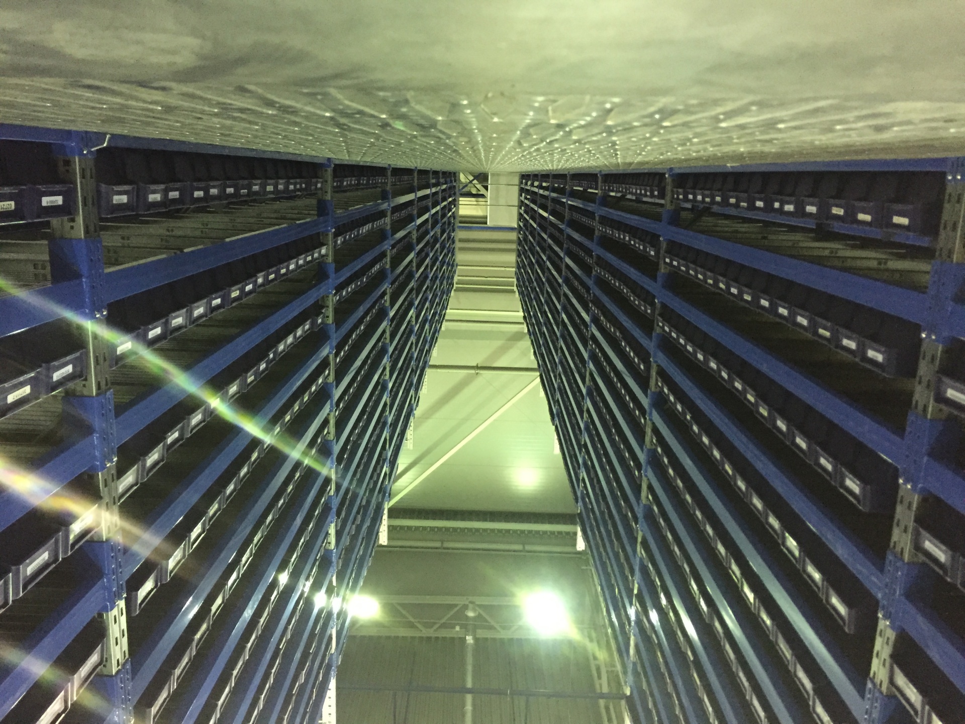 Складской стеллаж с пластиковыми ящиками на колесах