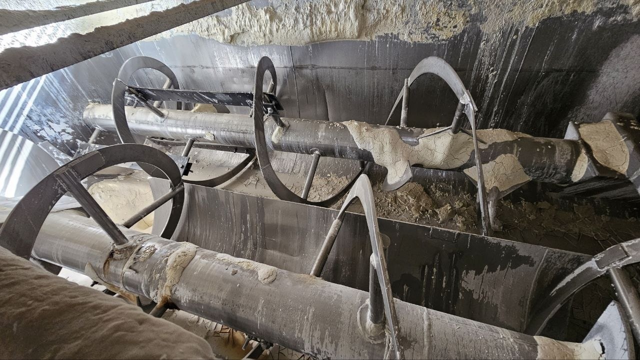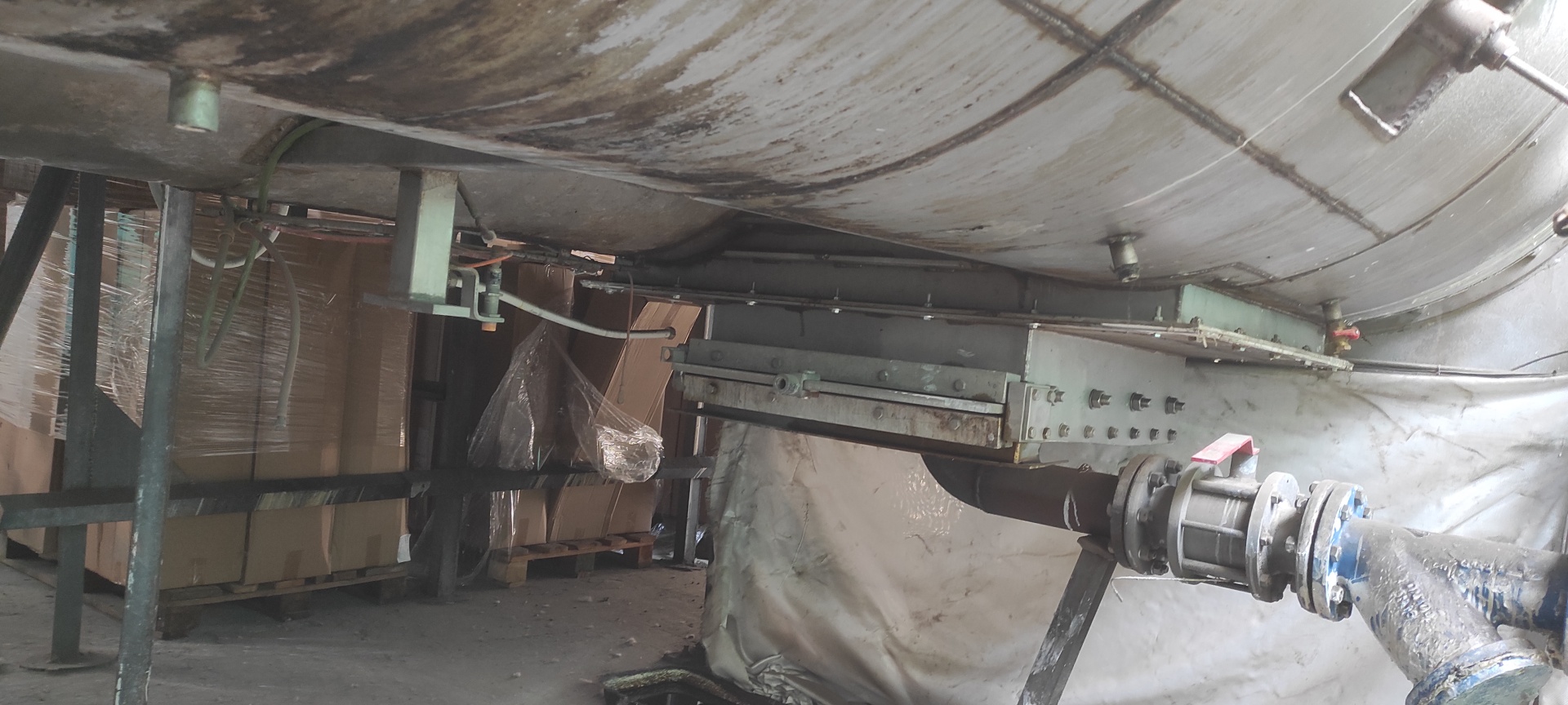Объем данного ддиссольвера 10м3. Оснащен двумя шнеками приводящимися мотор редукторами.