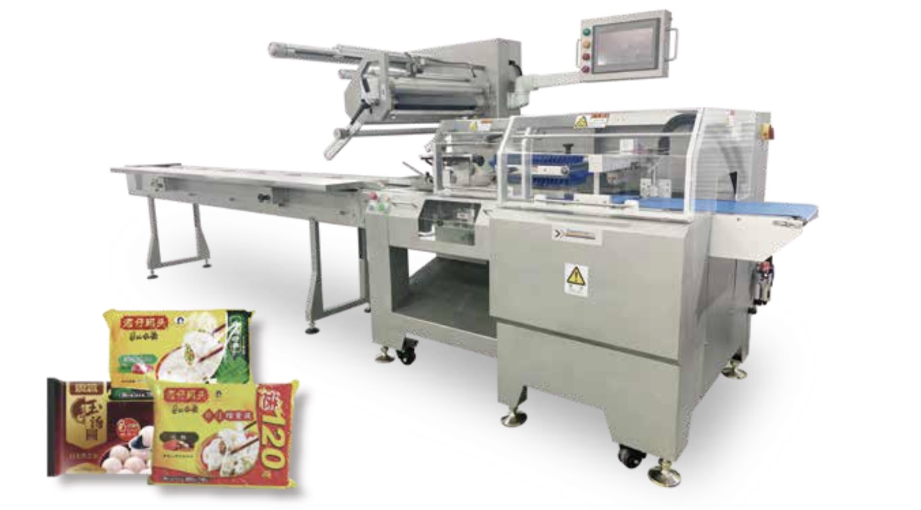 Подходит для упаковки большинства быстрозамороженных продуктов, таких как пельмени, вонтоны, паровые булочки, клейкие рисовые шарики и т.д., а также различных твердых и регулярных предметов, таких как одиночные или групповые булочки, гамбургеры, хлеб, торты, коробки и др.