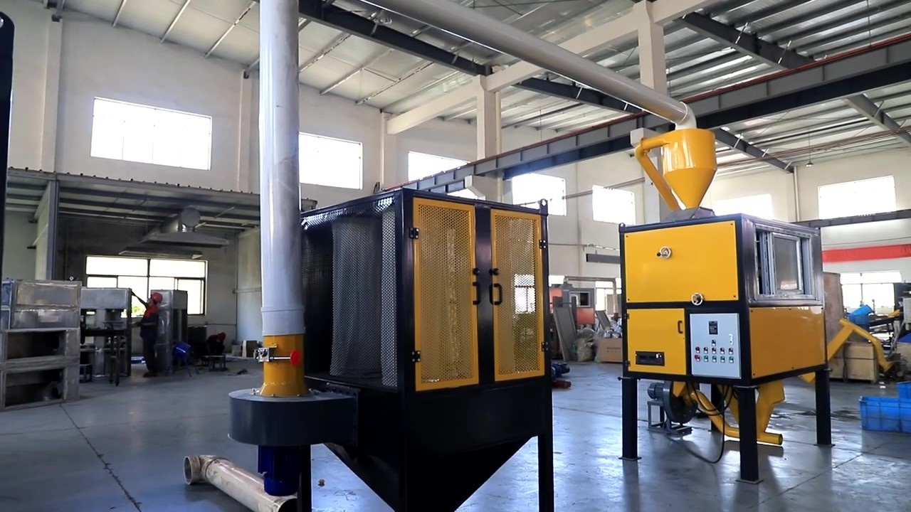 - Смешанная фракция, попавшая на электростатический разделительный барабан из разгрузочного бункера, разделяется на чистую медь и чистый пластик по электростатическому принципу.