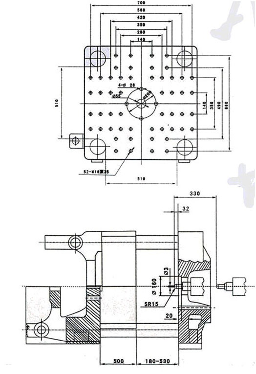 Усилие запирания 2000 кН. Между колонн 510х510 мм. Высота пресс-формы(мин-мах) 180-530 мм. Ход/ Усилие толкателя 140 мм/60 кН. 5 толкателей.