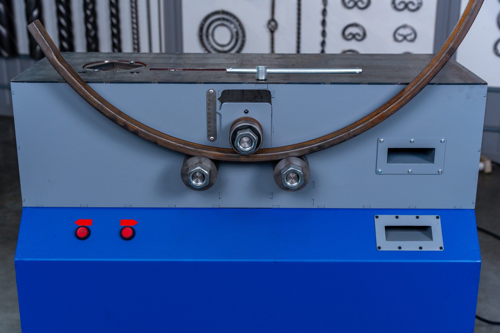 Кузнечный станок "ПРОФИ-5" позволяет изготавливать широкую номенклатуру изделий художественного декора из профильной трубы и полнотелого металлопроката по технологии «холодной» и «горячей» ковки. Наши станки используются для изготовления: оград, лестниц, оконных решеток, ворот, декоративной продукции для сада и многого другого.