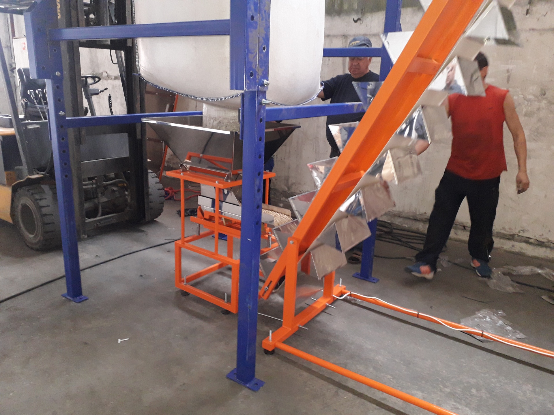 Фасовочно-упаковочный автомат Gran Profi 4500, произведен в Польше, оснащен весовым дозатором и предназначен для фасовки в мешки большими дозами непылящих продуктов обладающих хорошей сыпучестью, таких как: комбикорм, топливные гранулы, стиральный порошок, песок, пеллеты, сахар, зерно, соль, щебень, галька, грунт, торф, наполнители для животных и др.