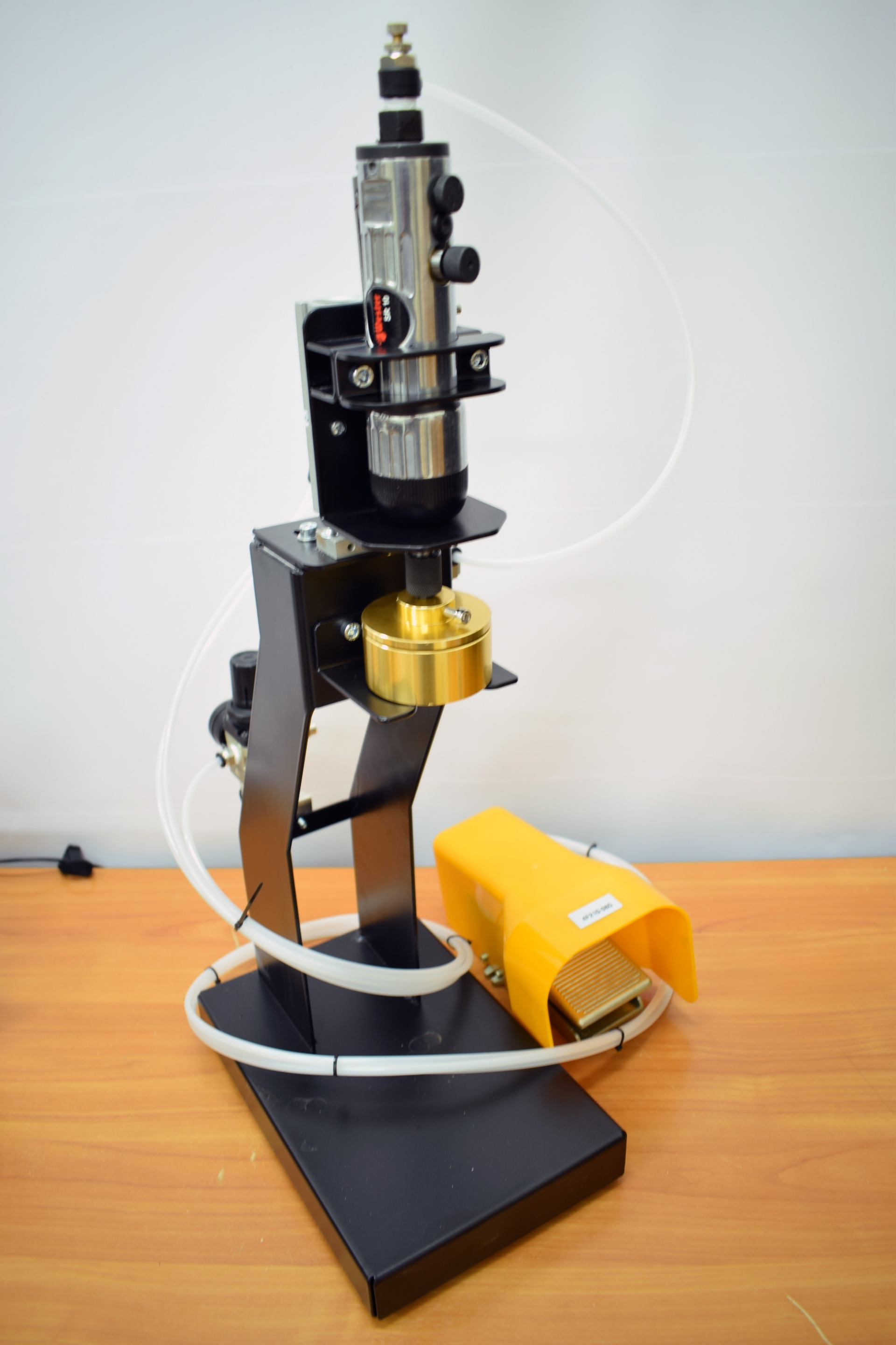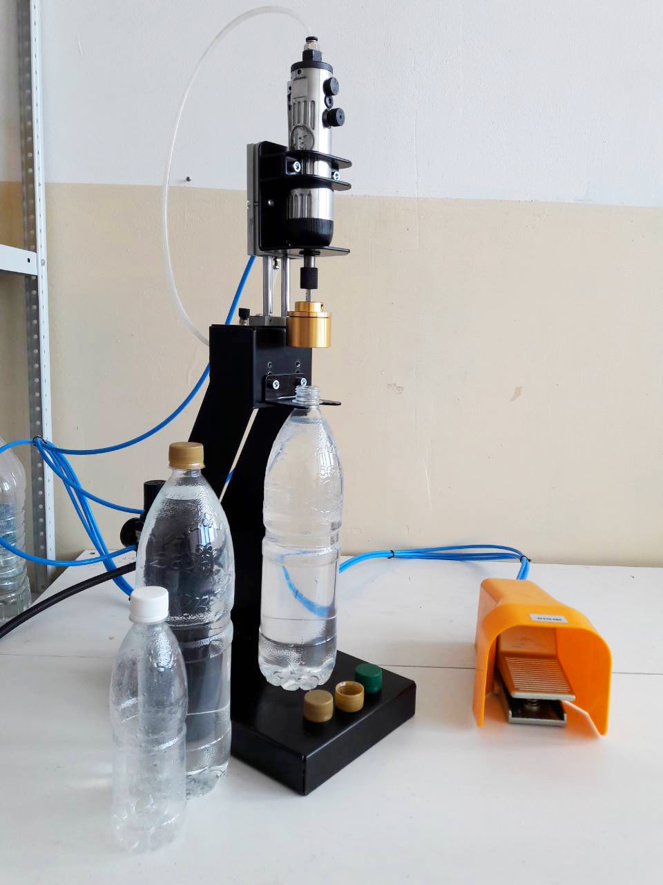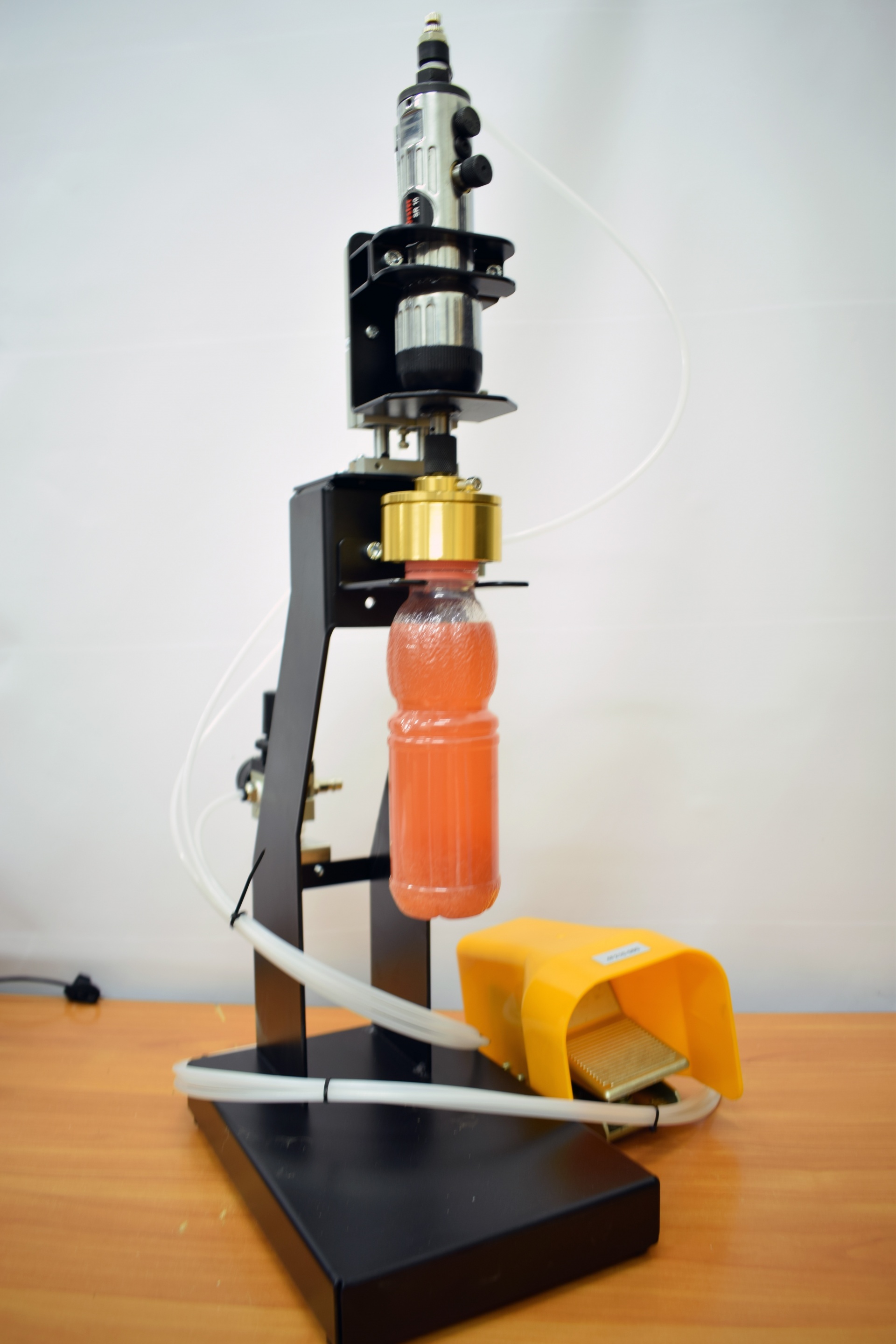 Укупорщик винтовой iCapper-PET (закрутчик) для навинчивающихся крышек, полуавтоматический. Подходит для укупорки бутылок и банок резьбовыми пластиковыми крышками и пробками, стеклянных банок - крышками «Твист офф» с возможностью регулировки усилия закрутки. Регулируется по высоте, оснащается укупорочной головкой необходимого размера. Идеален для начинающих производителей с небольшими объемами, но успешно используется и на крупных производствах. Подходит для использования в пищевой промышленности. Работает на пневматике, необходим компрессор (не входит в комплект поставки).