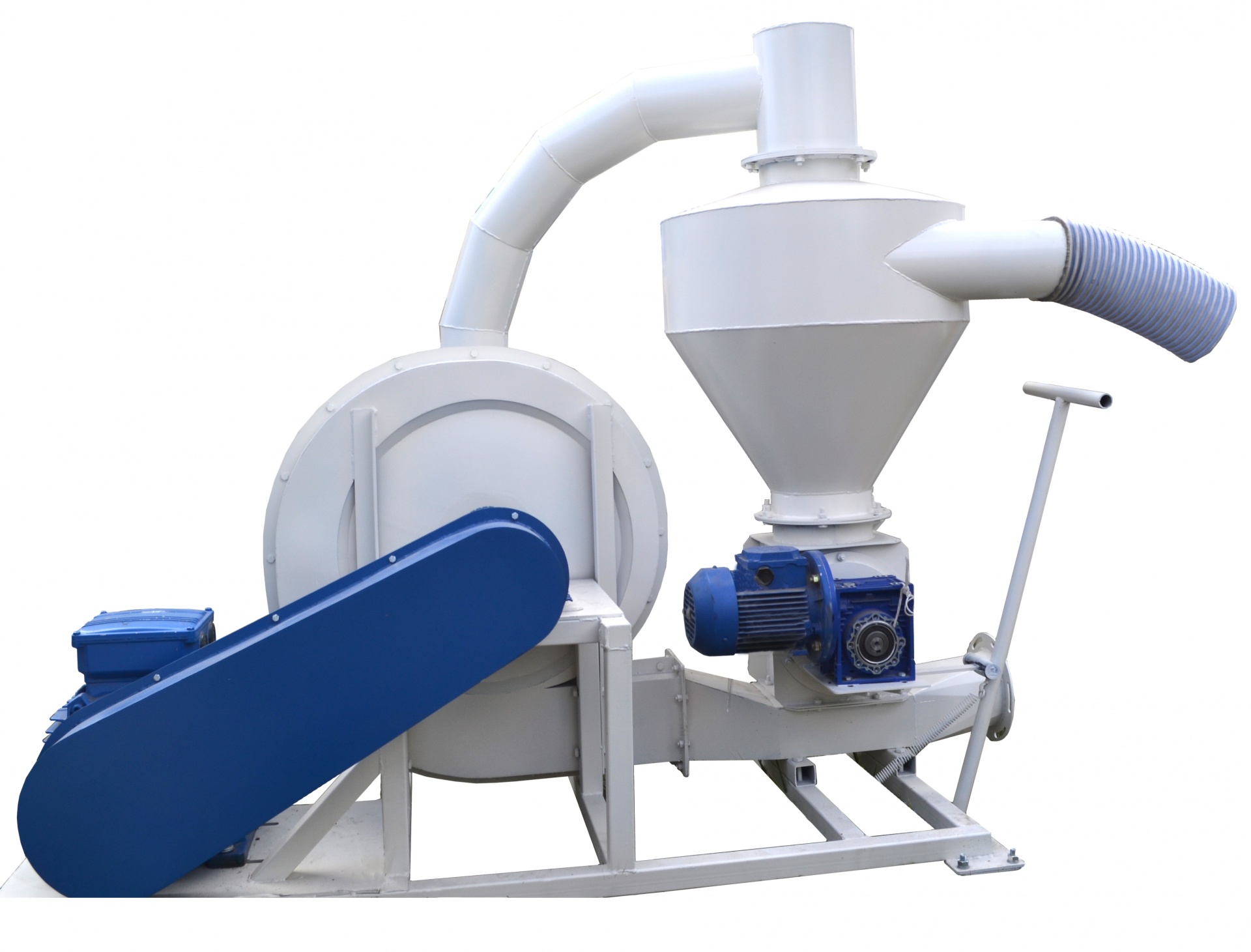 Установка относится к всасывающе-нагнетательному типу. Продукт поступает в циклон под действием разряжения, создаваемого вентилятором. Из циклона продукт проходит через шлюзовое устройство и поступает в выдающий трубопровод, где потоком воздуха от вентилятора перемещается по магистрали на необходимое расстояние и высоту.