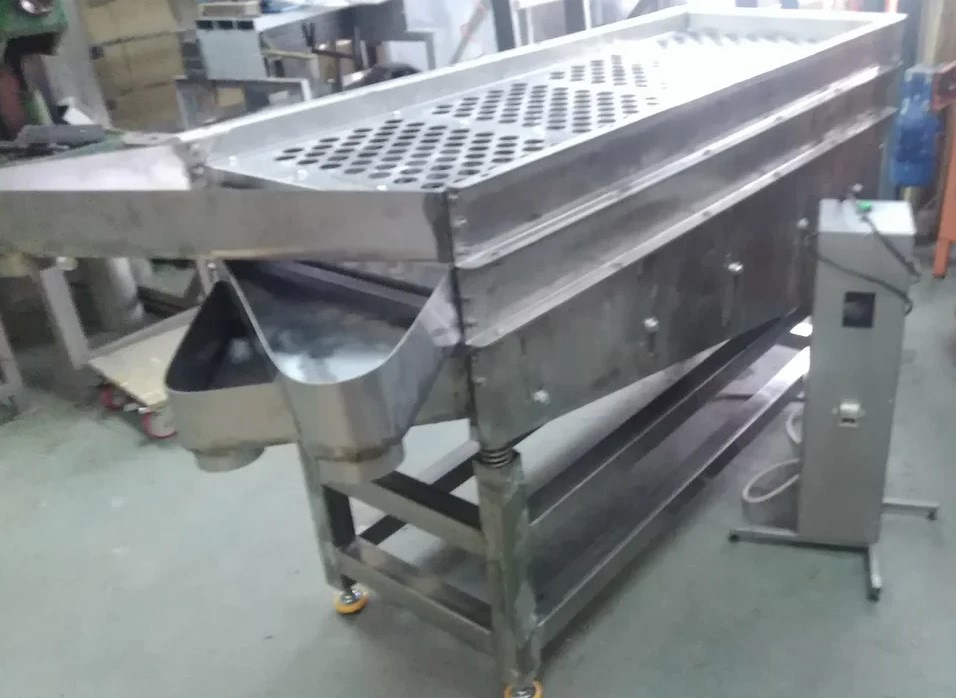 Вибросито-калибратор предназначено для разделения продуктов на фракции по размеру. Особенностью данного вибросита является возможность регулирования величины отверстий в ситах, в зависимости от текущих потребностей. Это позволяет оперативно изменять размеры фракций, а так же переходить с одного продукта на другой без замены дорогостоящих сит. Вибросито позволяет разделять продукт на четыре фракции включая особо мелкую. Все сита, а также бункер и отводящие желобы изготовлены из пищевой нержавеющей стали, что предотвращает их взаимодействие с продуктом и обеспечивает длительный срок службы.