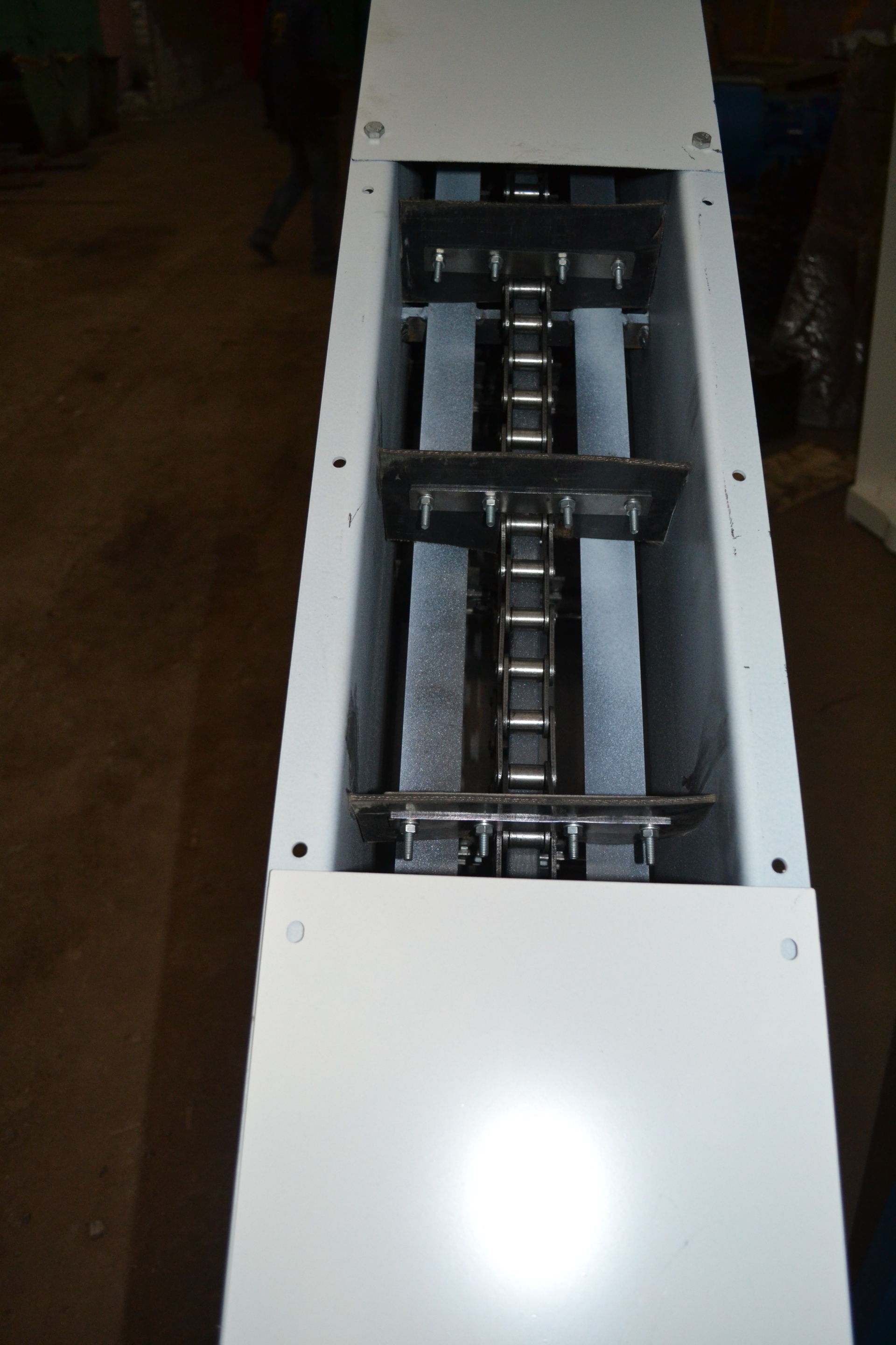 Скребковые транспортеры, как их еще называют цепные транспортеры, предназначены для транспортировки сыпучих материалов по горизонтали на расстояние до 75 метров при различных углах наклона. Данный вид транспортеров применяется там, где требуется бережная и эффективная транспортировка материала в закрытой пыленепроницаемой системе на большие расстояния. Транспортеры могут быть изготовлены из углеродистой, нержавеющей или оцинкованной сталей с полимерными или стальными скребками.