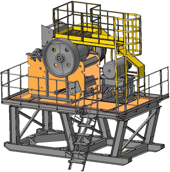 Компания производит и поставляет модельный ряд щековых дробилок и агрегатов дробления. Агрегат состоит из щековой дробилки ДЩ-и металлоконструкций рамы обслуживания. Рама позволяет устанавливать под дробилку отводящий конвейер и исключить установление сложного железобетонного фундамента. Станина дробилки сварная. В зоне дробления боковые стенки станины защищены бронями (футеровками).