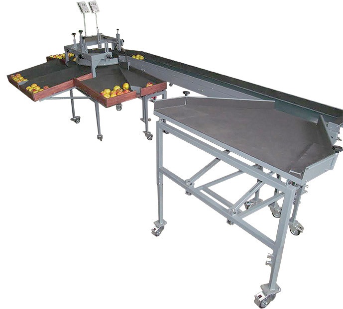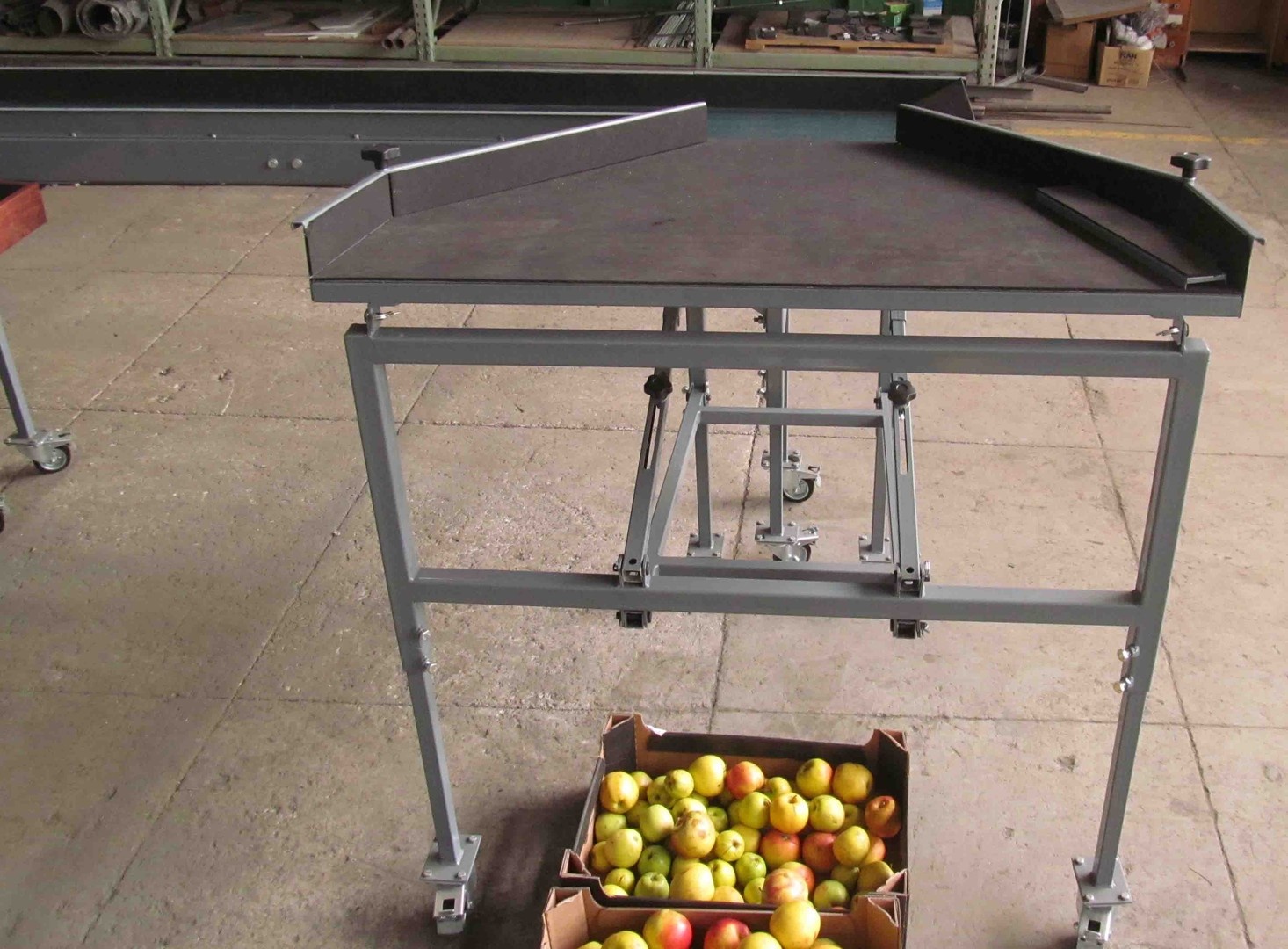 5. Откалиброванные фрукты собираются по фракциям на столах с мягким покрытием. Столы устанавливаются на оптимальной, эргономичной рабочей высоте.