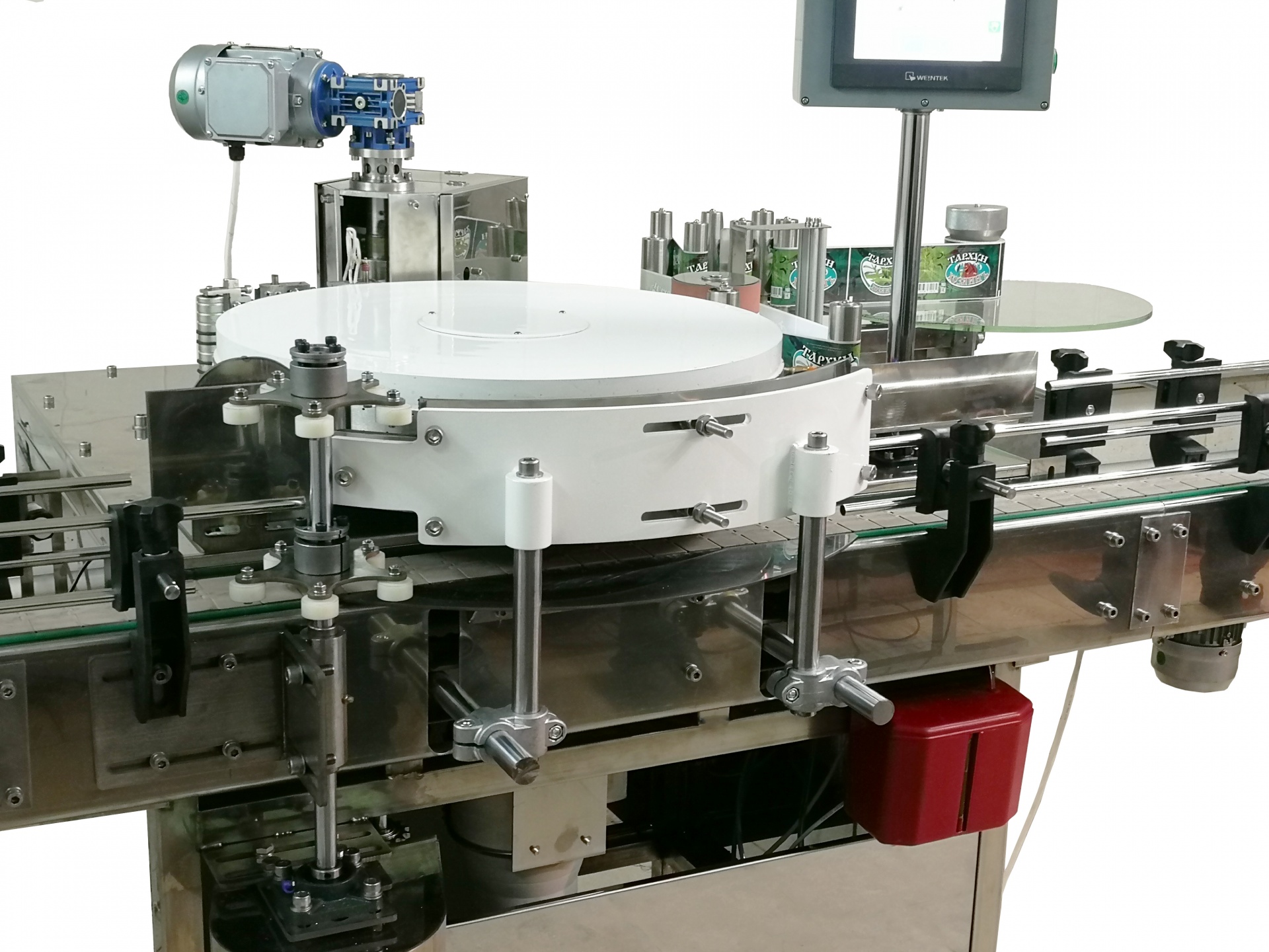 Имеется средство визуализации и контроля - сенсорной панели оператора фирмы Weintek. Такое решение позволяет представить технологический процесс наклеивания этикеток наглядно на экране панели, обеспечивает быстрый доступ к настройкам параметров работы установки, визуализирует возникшие в ее работе аварийные ситуации. Широкие графические возможности панели оператора позволяют обеспечить разделы помощи по каждому параметру или аварии для обслуживающего персонала. В программном обеспечении панели предусмотрены возможности объединения нескольких установок в SCADA-систему для централизованного контроля технологических процессов.