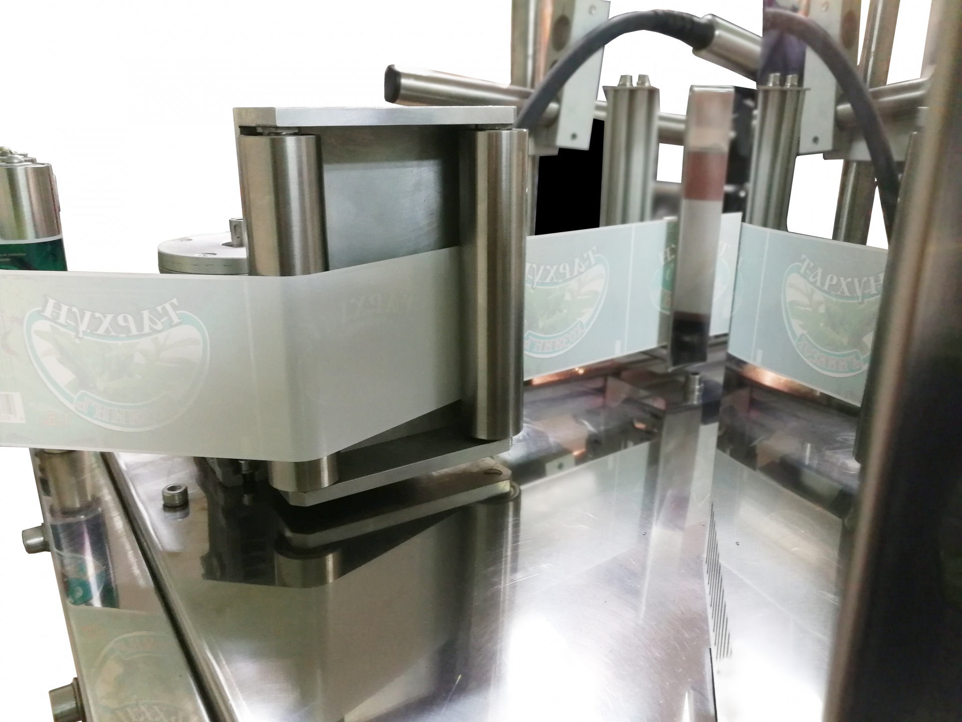 Установка для нанесения полипропиленовых этикеток на ПЭТ-емкости.