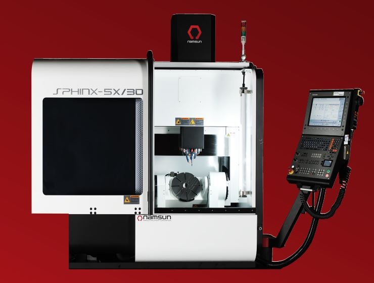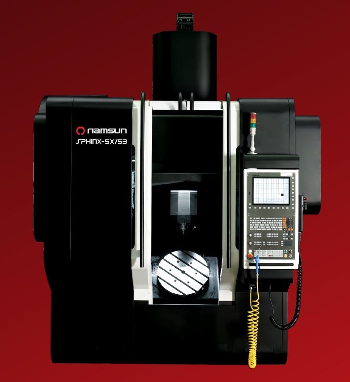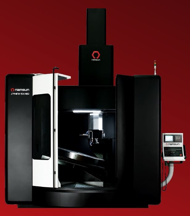 5-осевые фрезерные центры мод. SPHINX (Namsun, Южная Корея), позволяют обрабатывать заготовки без дополнительной переустановки, что повышает точность их изготовления, а так же дают возможность выполнять обработку сложных поверхностей. Встроенный сервомотор и высокоточный датчик положения Heidenhain обеспечивает очень высокую точность позиционирования. Синхронизированный встроенный мотор прямого действия полностью устраняет люфт, в связи с чем отсутствует необходимость коррекции люфтов в течение длительного срока эксплуатации.