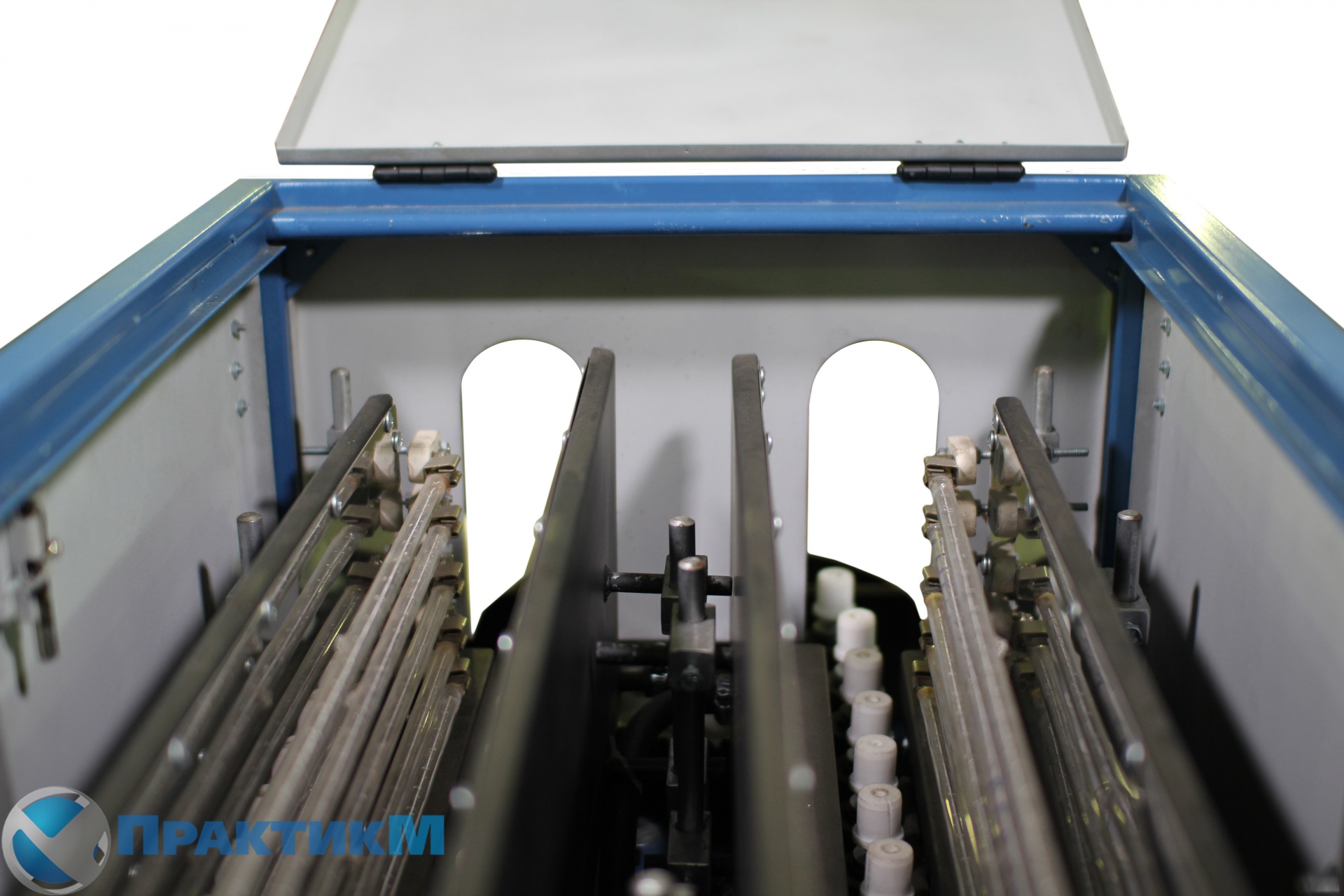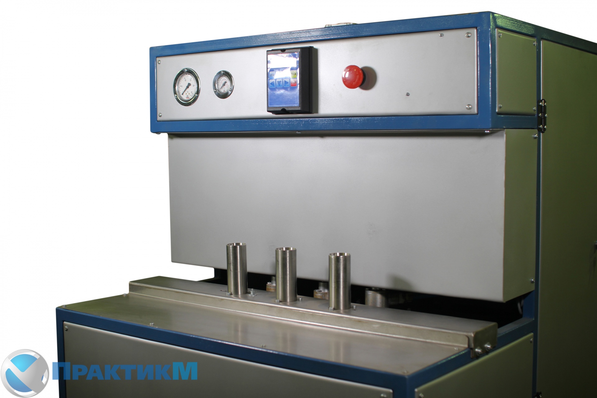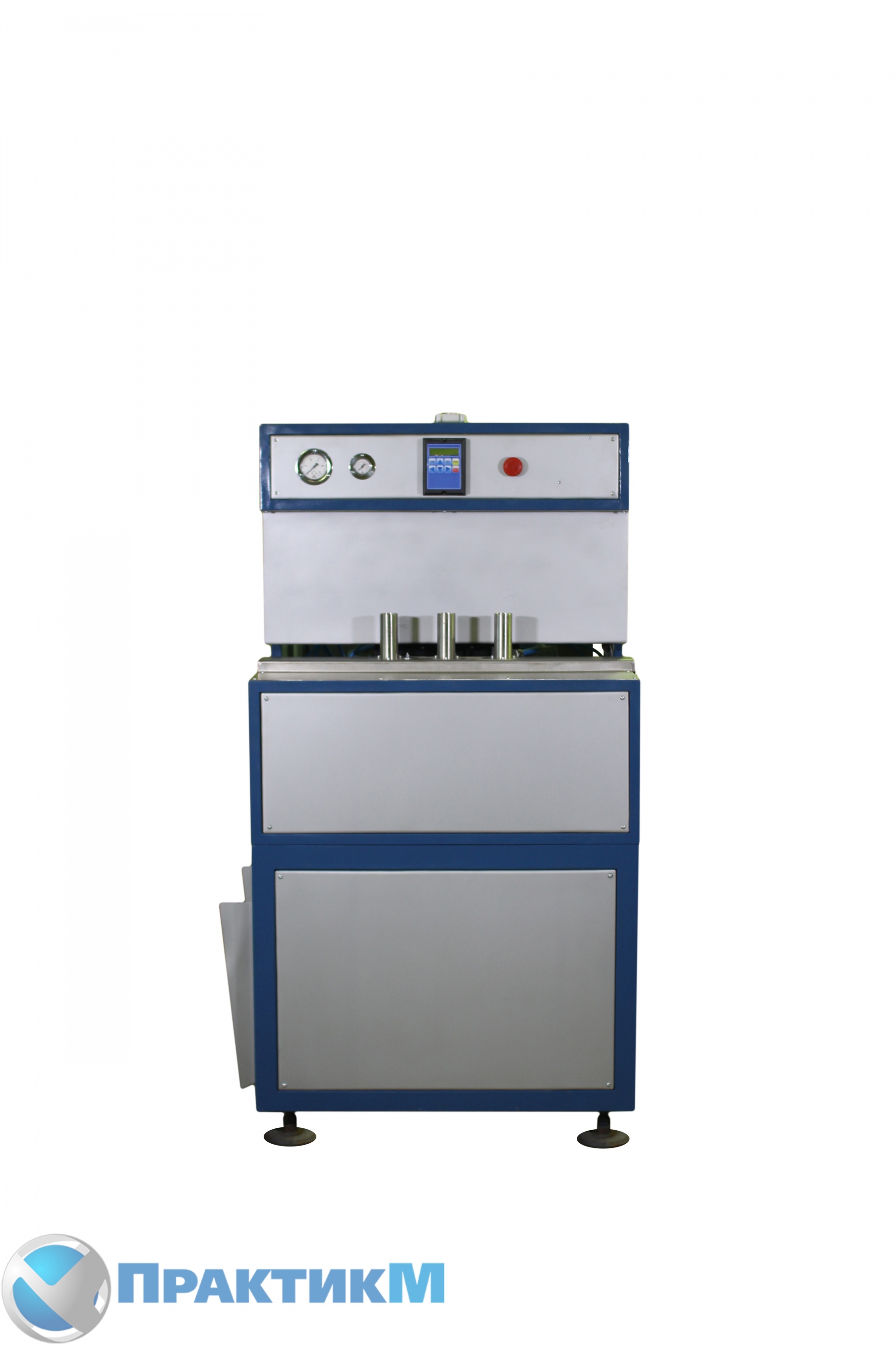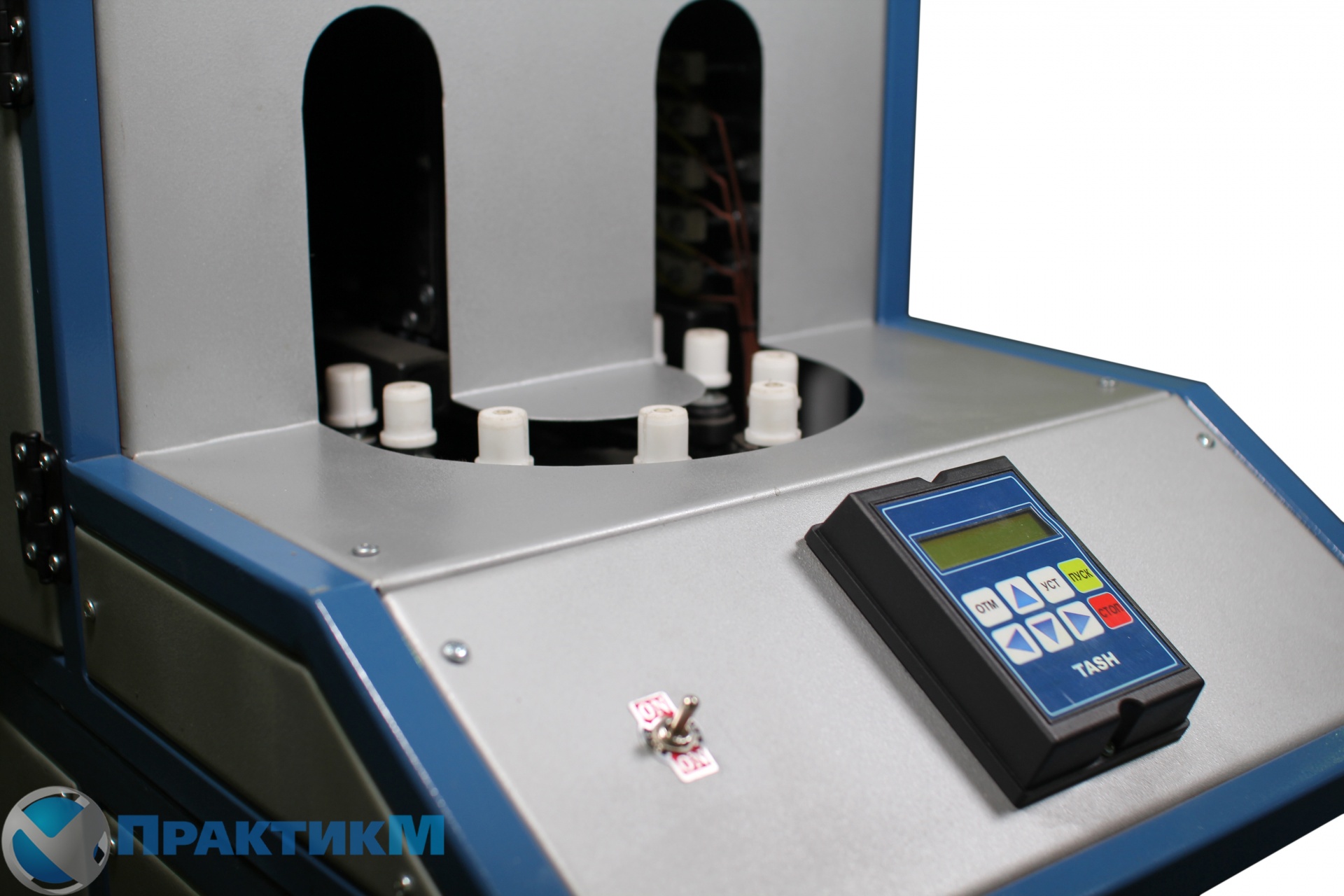 Принцип работы. Оператор берет преформу с печи разогрева и опускает в специальную ячейку. После опускания третей преформы происходит смыкание пресса. Пока идет роздув он опять кладет три преформы и она после предварительного раскрытия пресса поступает на пресформу. Выдутая бутылка выпадает вниз откидываются донышки бутылки куда ее выталкивает пневмовыталкиватель.